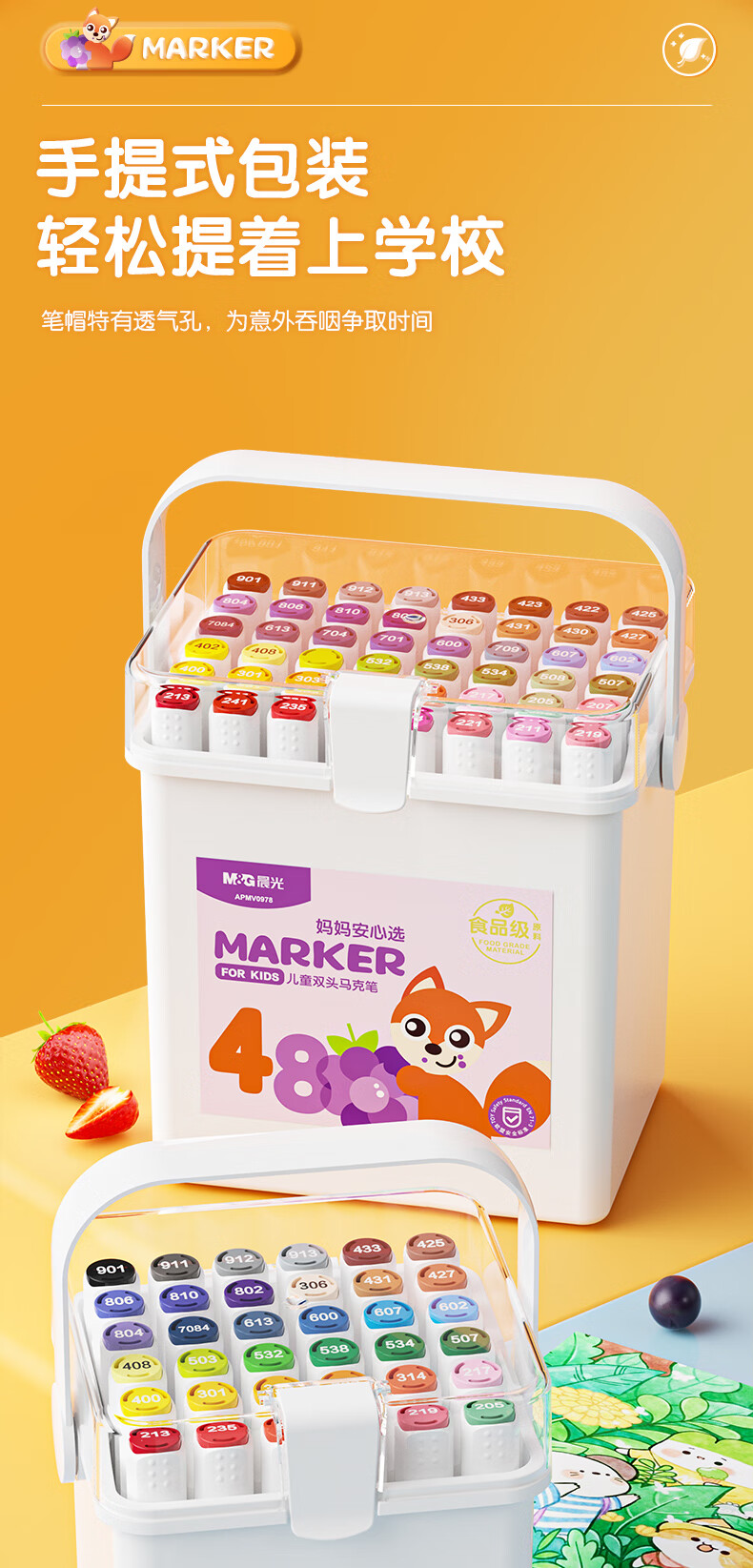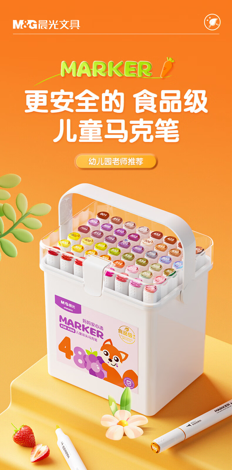 晨光(M&G)文具24色食品級馬克筆 兒童三角桿雙頭水性彩筆 學(xué)生美術(shù)專用繪畫畫筆套裝APMV0976