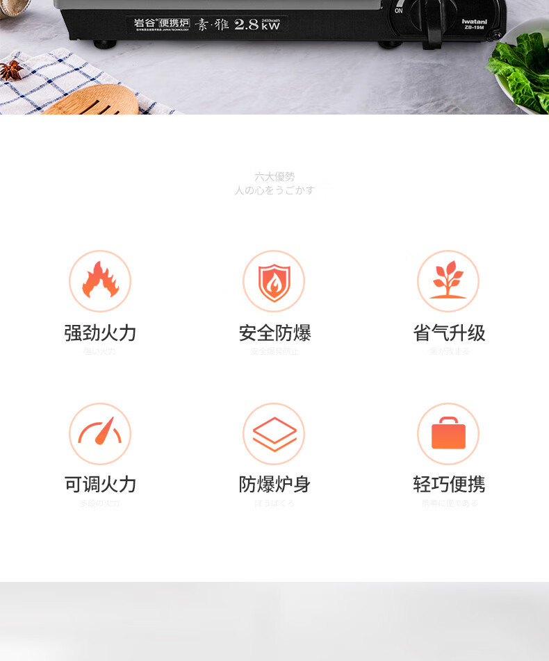 “Iwatani/巖谷”ZB-19M 便攜爐 單箱裝(素雅2.8kW卡磁爐瓦斯?fàn)t火鍋爐具燒烤爐子野炊卡斯?fàn)t含卡式爐+4氣+便攜箱)