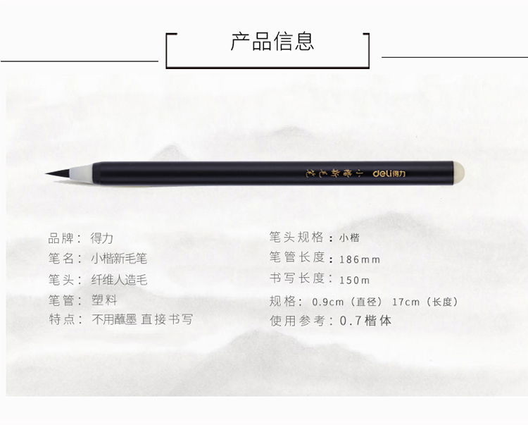 “deli/得力”No.6589 小楷新毛筆 單支裝(黑色新式書(shū)法軟筆鋼筆式秀麗筆初學(xué)者入門練字文房四寶筆墨紙硯)