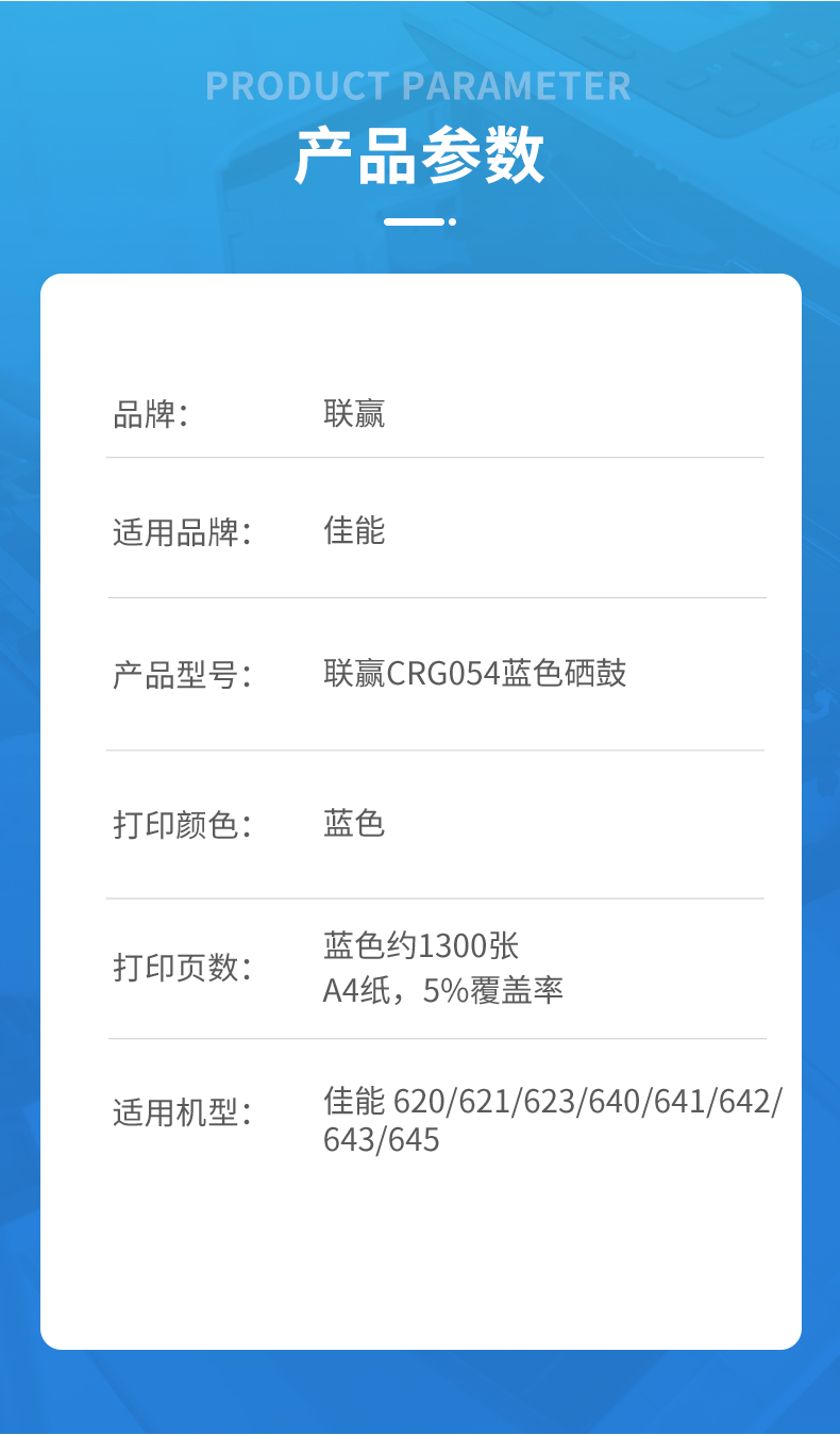 “LIANYING/聯(lián)贏”CRG054 激光打印機碳粉盒 單個裝(藍(lán)色硒鼓適用佳能620/621/623/640/641/642/643/645)