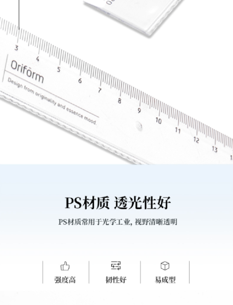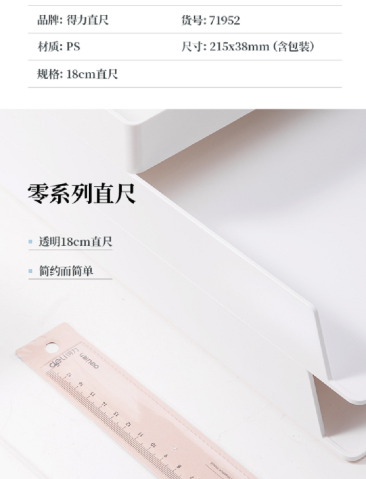 “deli/得力”No.71952 直尺 單把裝(透明本色PS材質(zhì)刻度清晰耐磨耐用)