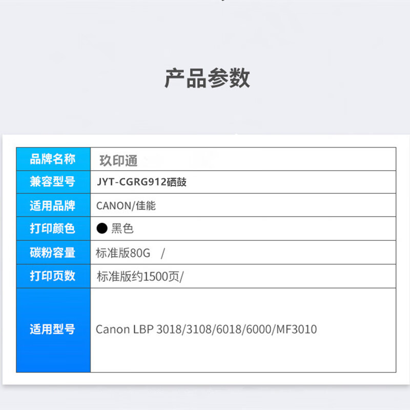 “玖印通”JYT-CRG912 硒鼓 1支裝(黑色適用LBP/3018/LBP3050/LBP3108 LBP3010/LBP3100)