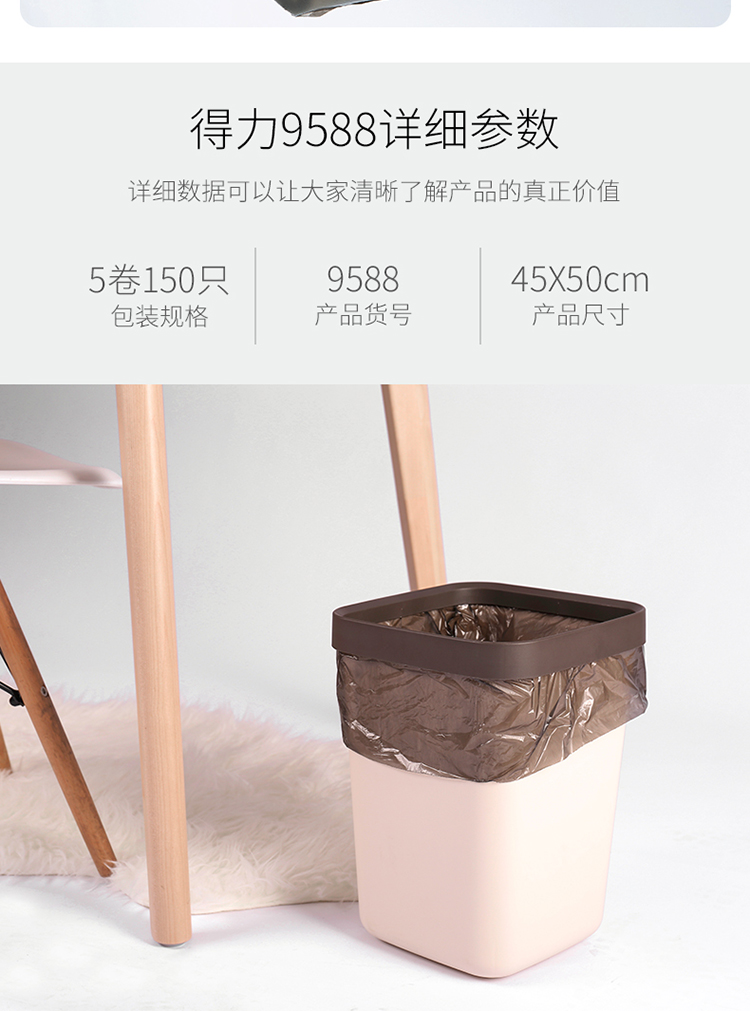 “deli/得力”No.9588 平底垃圾袋 1包裝(黑色塑料30個/卷5卷/包450*500*0.007mm)