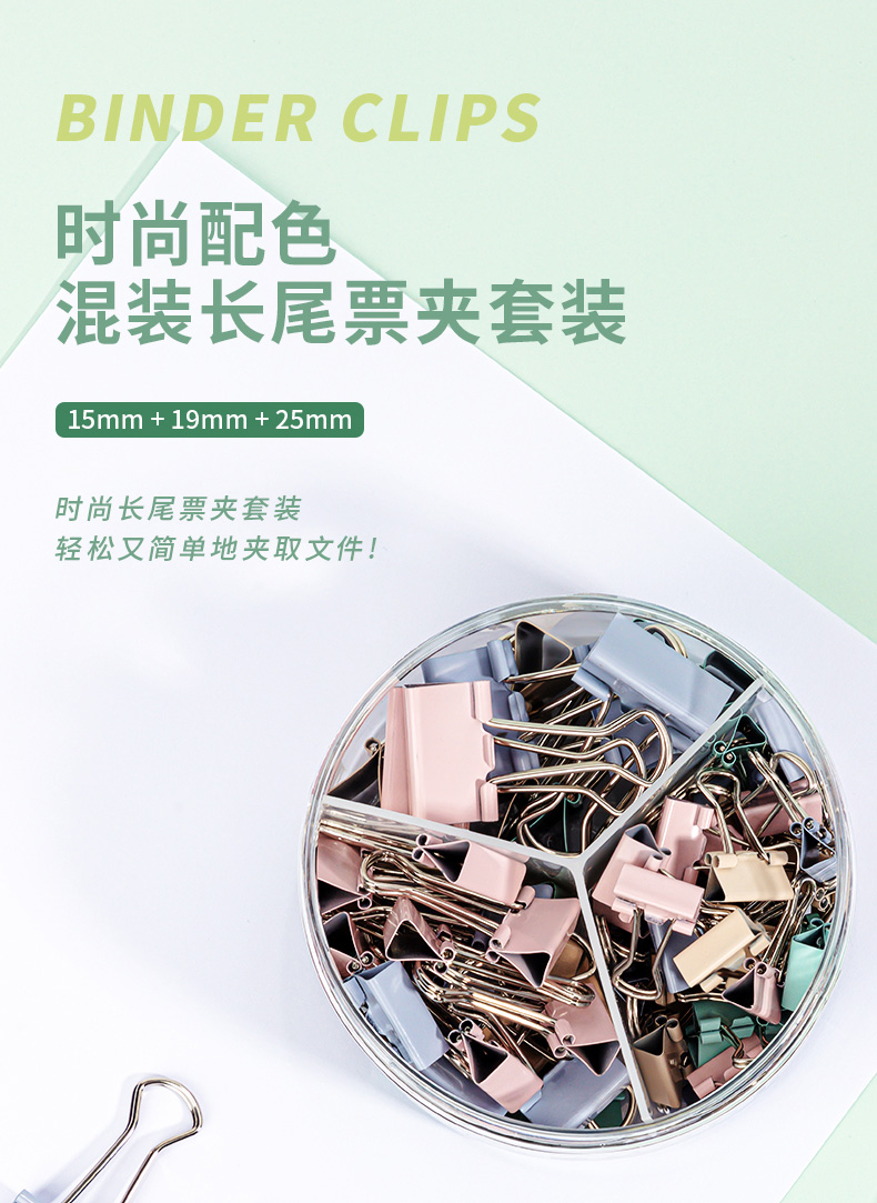 “deli/得力”No.8521A 時(shí)尚長尾票夾套裝 單筒裝(莫蘭迪色多規(guī)格票夾彩色長尾夾燕尾夾中號(hào)+小號(hào)25mm*12只+19mm*25只+15mm*45只82只/筒)