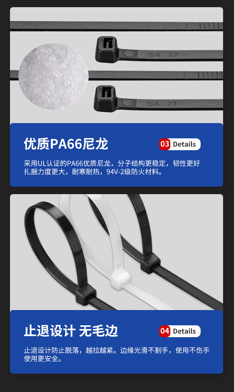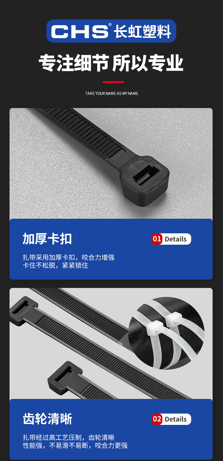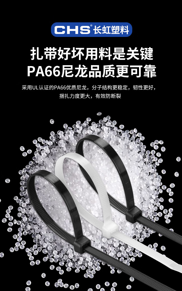 “CHS/長虹”ZD-SLT-3X150 尼龍扎帶 單包裝(白色寬2.5mm長15cm自鎖式聚酰胺扎帶工業(yè)級加寬耐寒低溫防凍抗紫外線3*150 1000根/包)