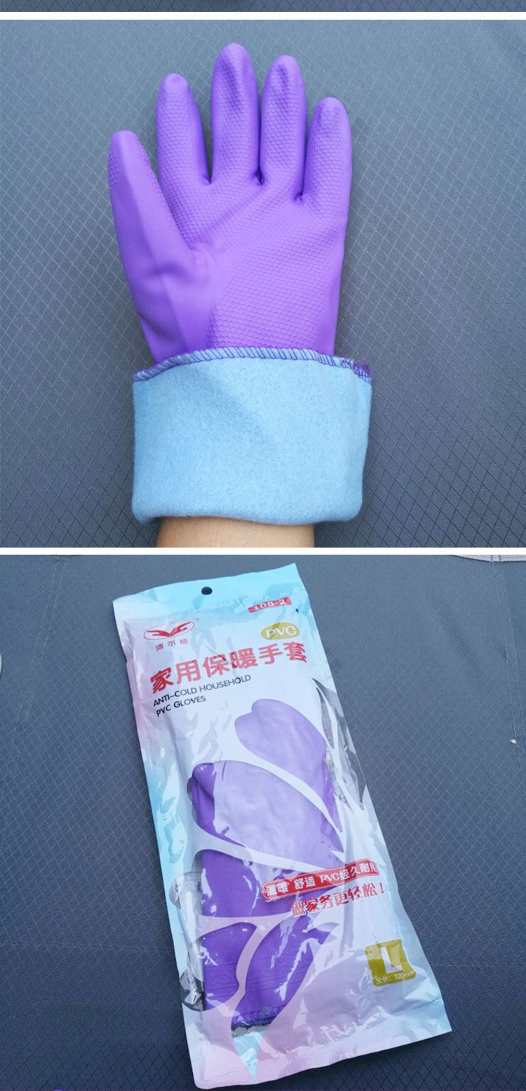 “博爾格”108-2 家用保暖手套 1付裝(紫色L碼PVC冬季加厚防寒絨里一體洗車洗衣洗碗10付/包120付/箱)