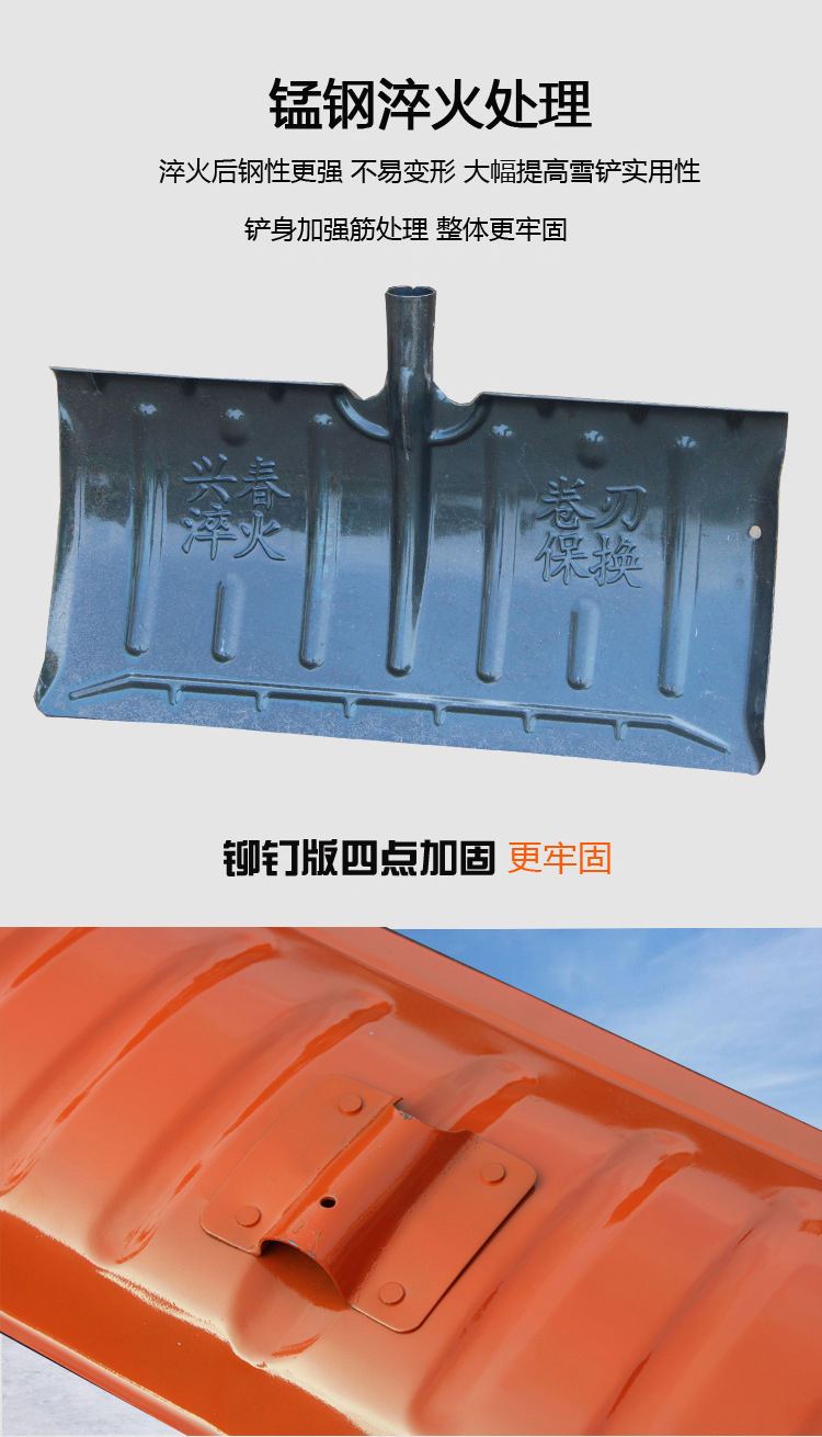 加厚全鋼推雪鍬鏟推雪板鏟大號(hào)除雪清糞多功能鏟除雪鏟 加厚加寬一體款帶桿子