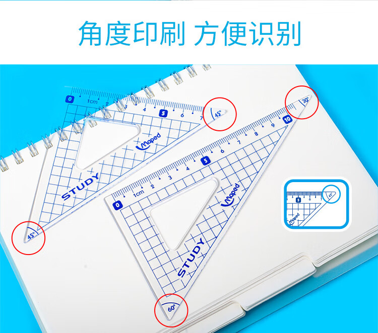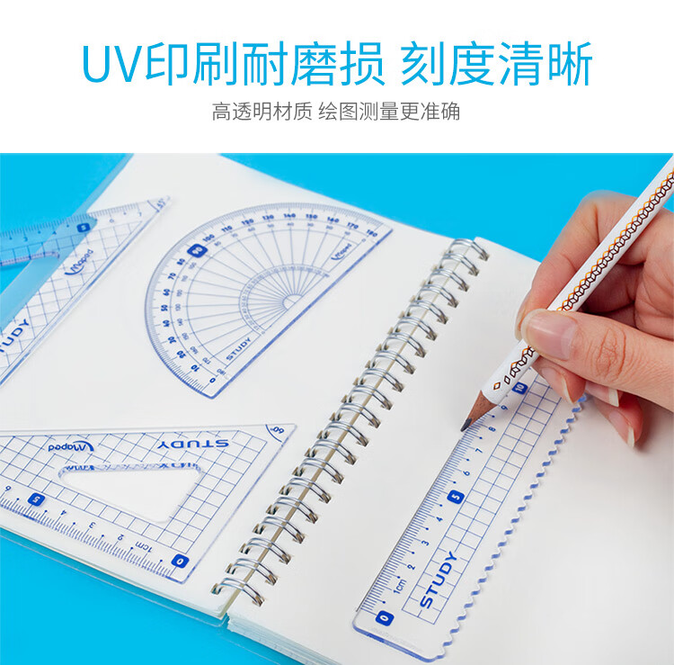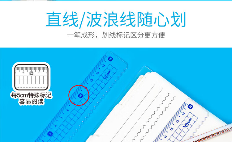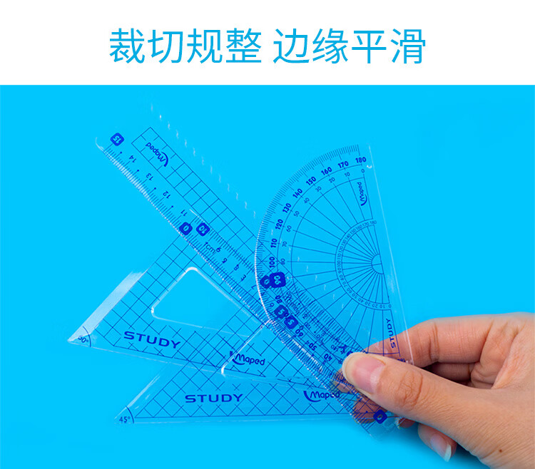 “Maped/馬培德”981739CH 學(xué)生套尺四件套 單套裝(直尺三角尺量角器繪圖尺子學(xué)生波浪直尺15cm塑料透明尺格尺)