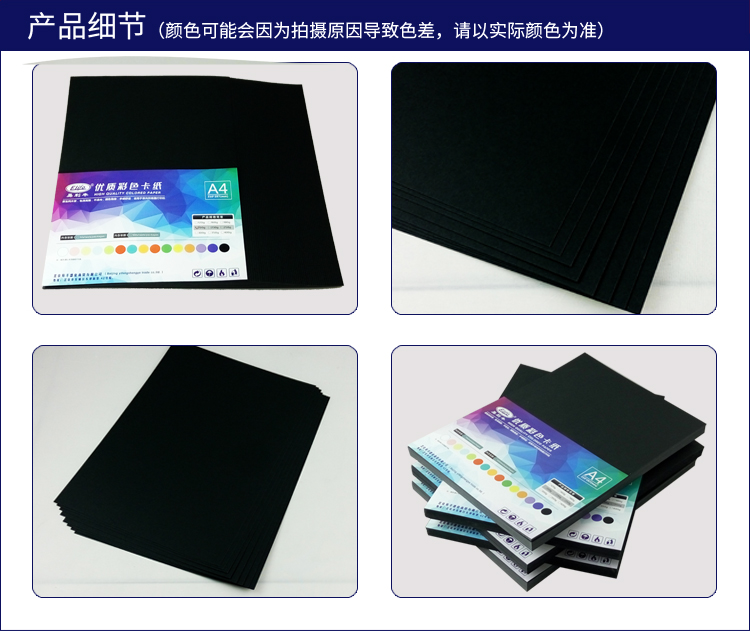 “elifo/易利豐”a412050 優(yōu)質(zhì)彩色卡紙 單包裝(黑色A4硬紙厚紙折紙手工彩紙打印紙兒童繪畫攝影美術(shù)紙50張/包)