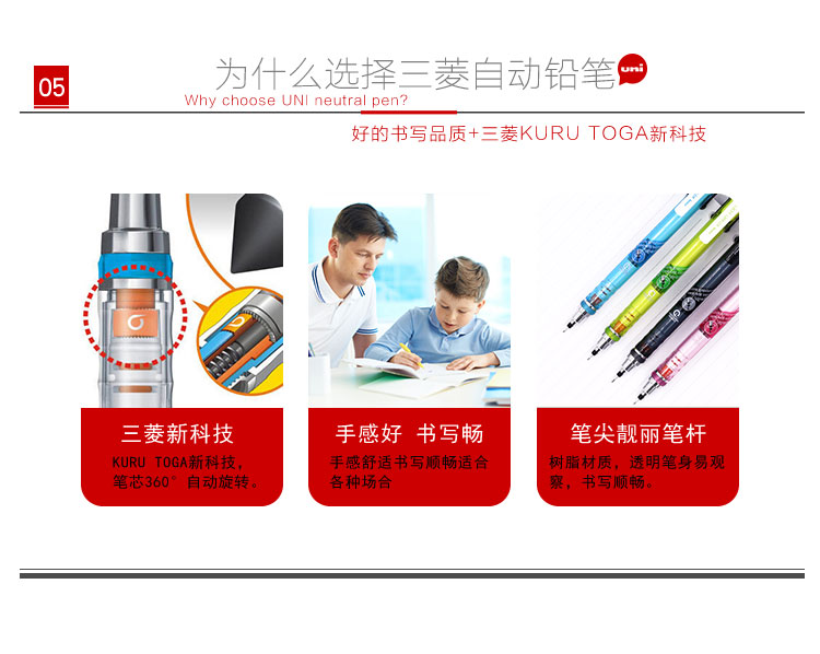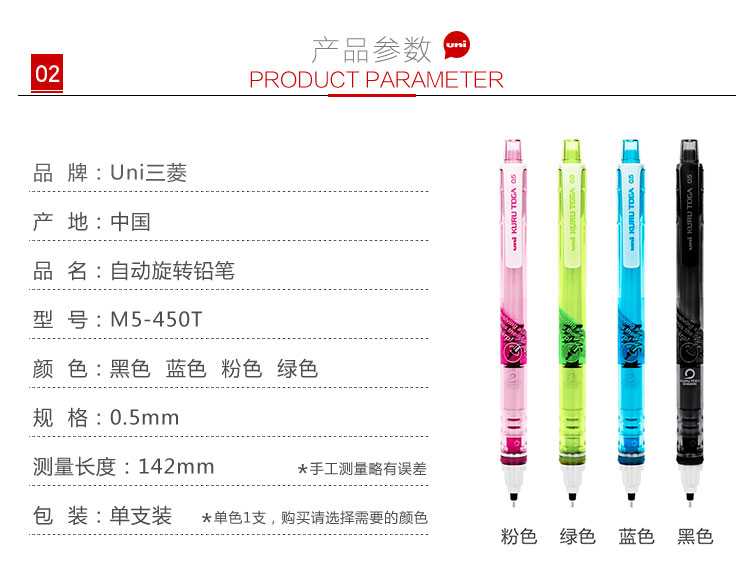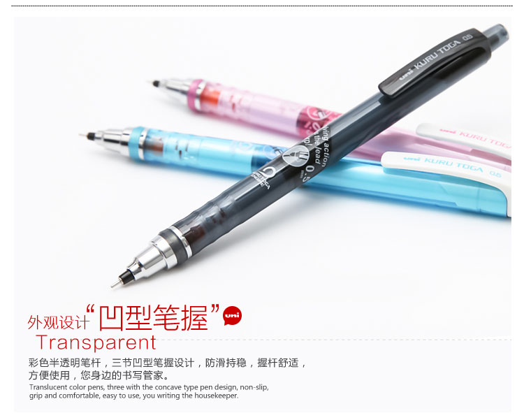 “Uni/三菱”M5-450T 自動旋轉(zhuǎn)鉛筆 單支裝(透明黑KURU TOGA系列0.5mm學(xué)生自動鉛筆鉛芯自動旋轉(zhuǎn)活動鉛筆)