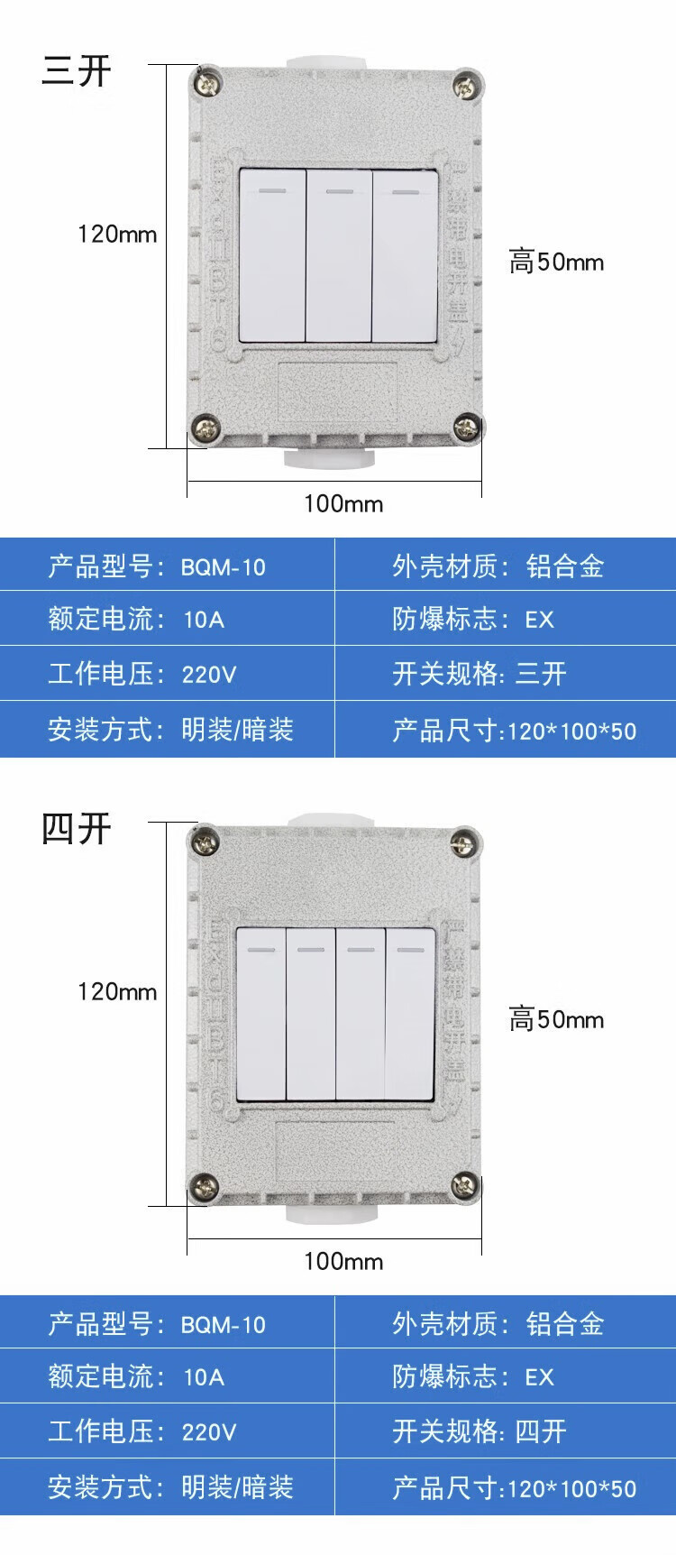 “VRK/威爾克”BQM-10 防爆開關(guān) 單個(gè)裝(86型220V 10A明裝暗裝墻壁照明開關(guān)一位)