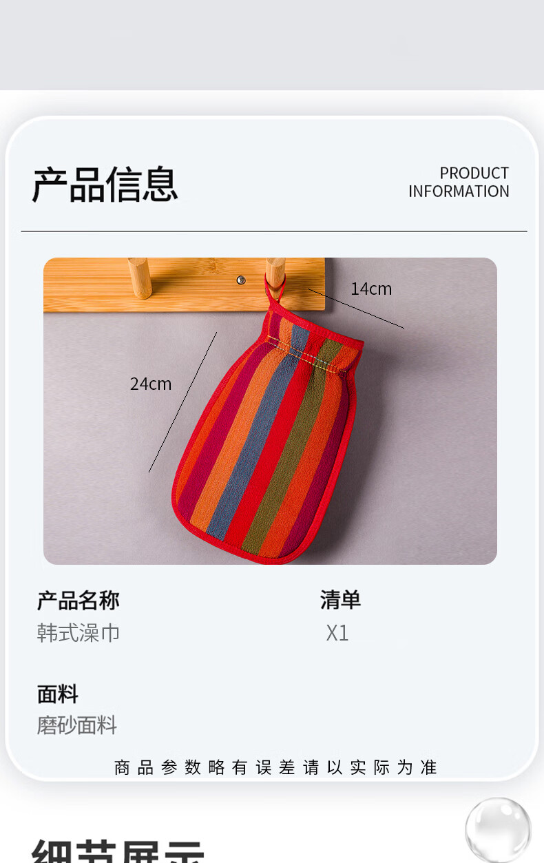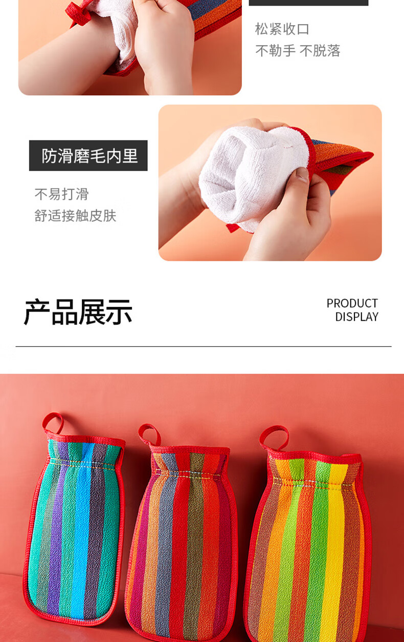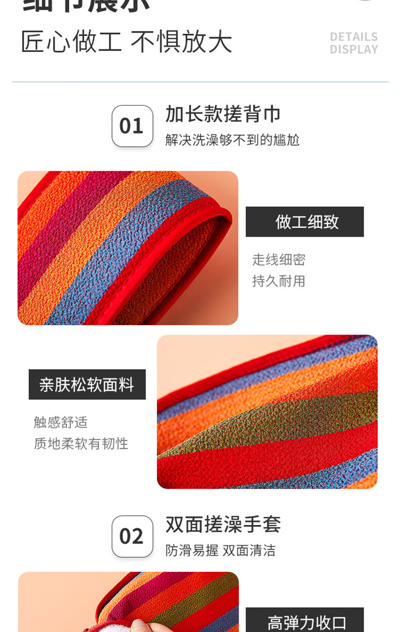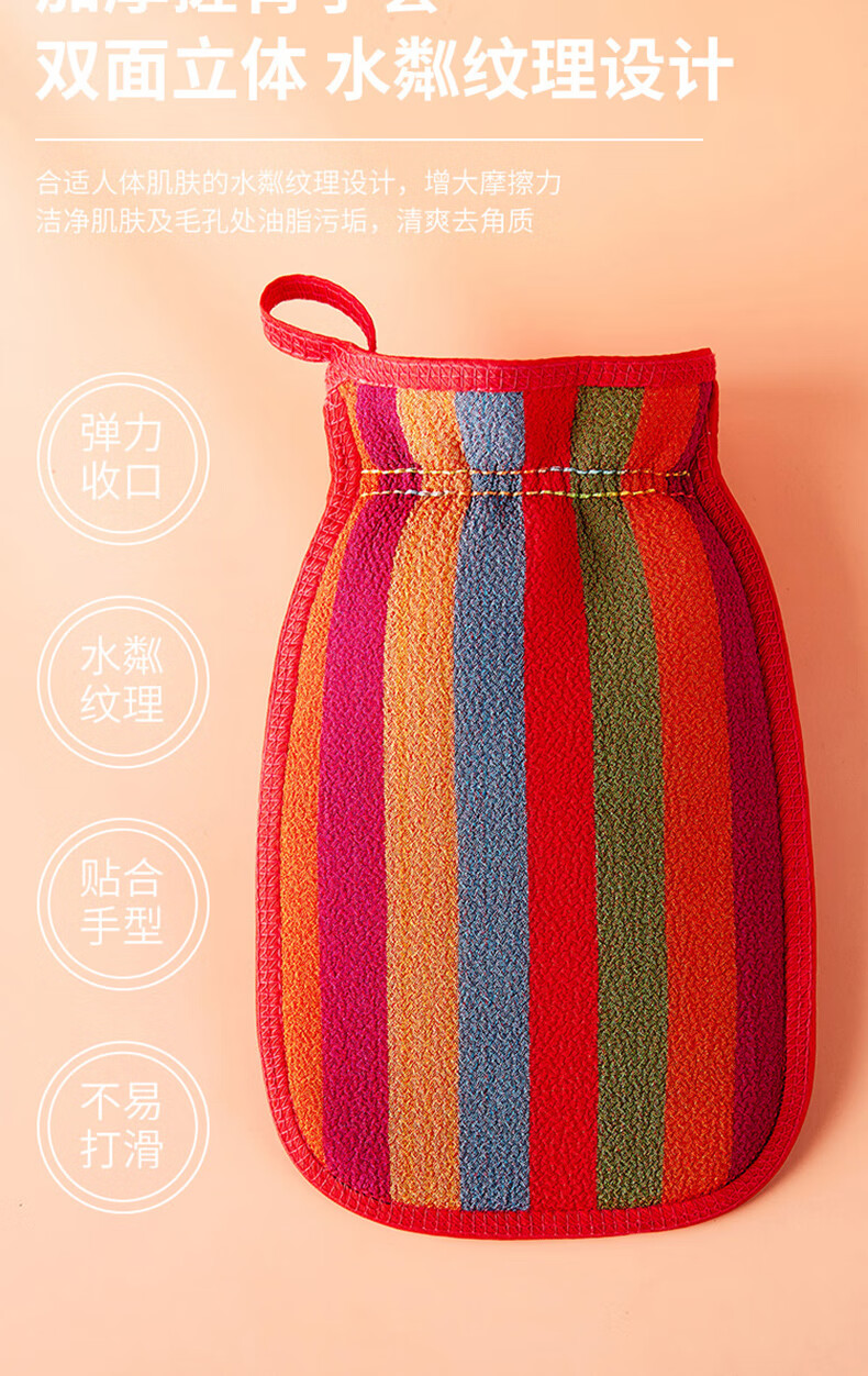 “JAJALIN/加加林”900 搓澡巾 單個(gè)裝(紅色彩虹款洗澡神器女士不疼搓背巾強(qiáng)力清潔男士個(gè)人搓灰搓泥韓式澡巾)