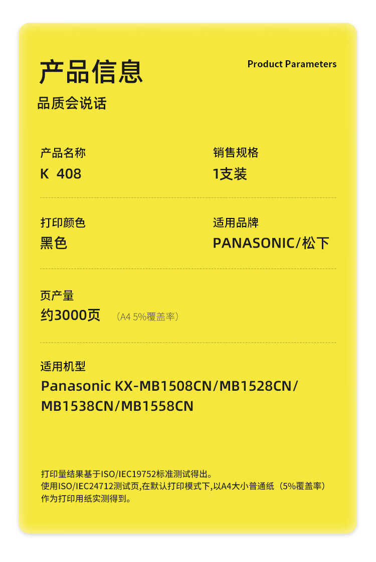 “KST/科思特”K 408 專業(yè)版 硒鼓 單支裝(適用Panasonic KX-MB1508CN/MB1528CN/MB1538CN/MB1558CN)
