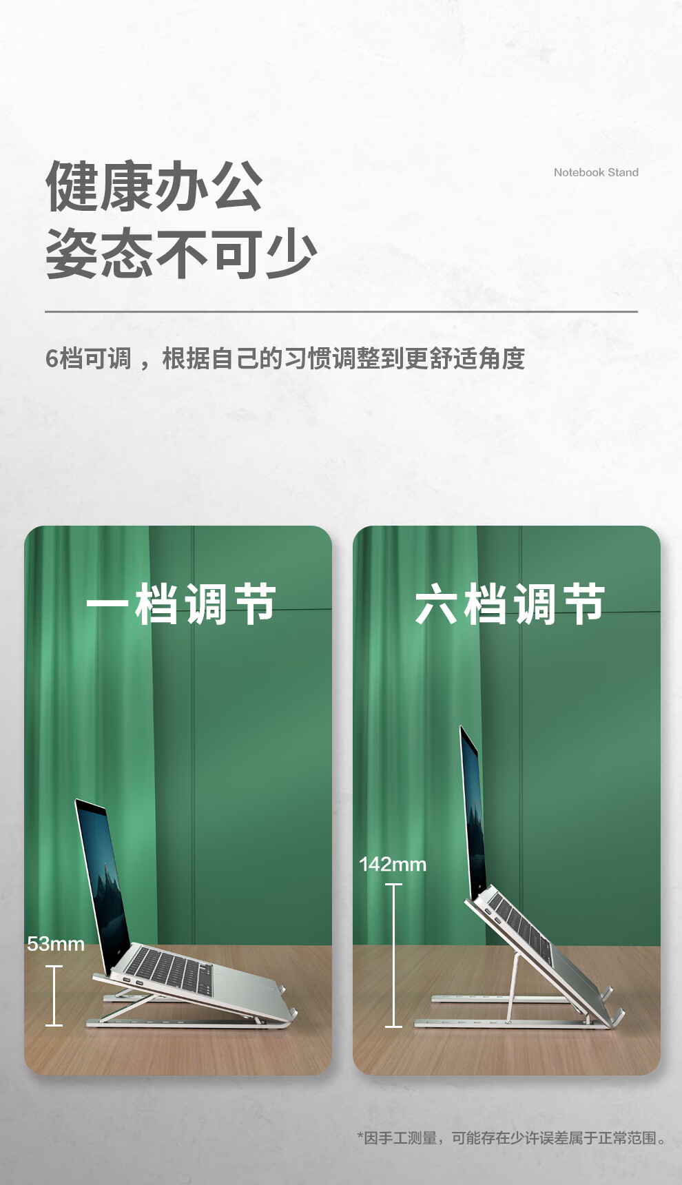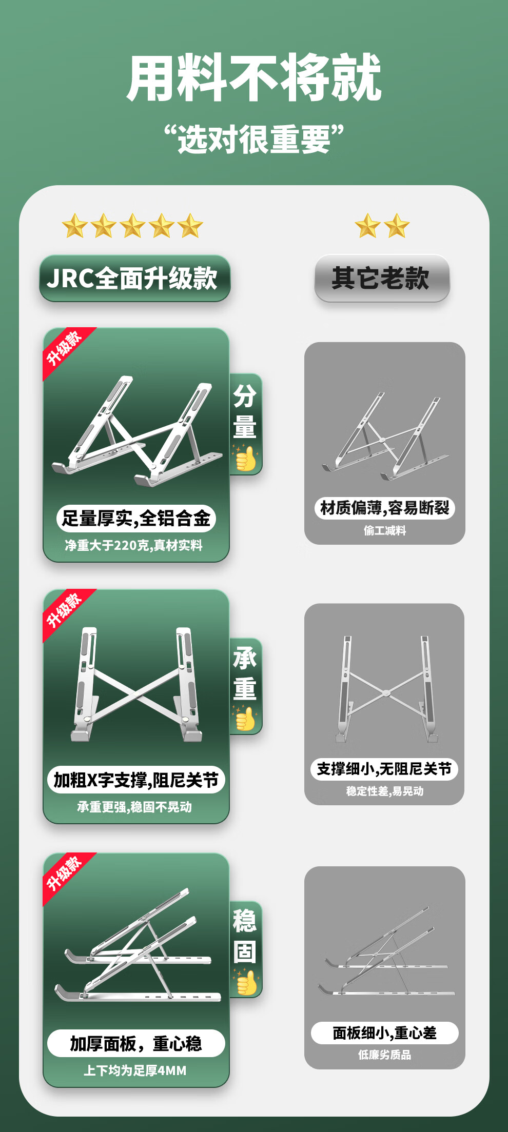 “InTheWorld(JRC)/極川”X6 筆記本折疊支架 1個裝(筆記本支架電腦支架散熱支架鋁合金便攜折疊升降立式增高架蘋果Mac聯(lián)想拯救者華為手提電腦架子)
