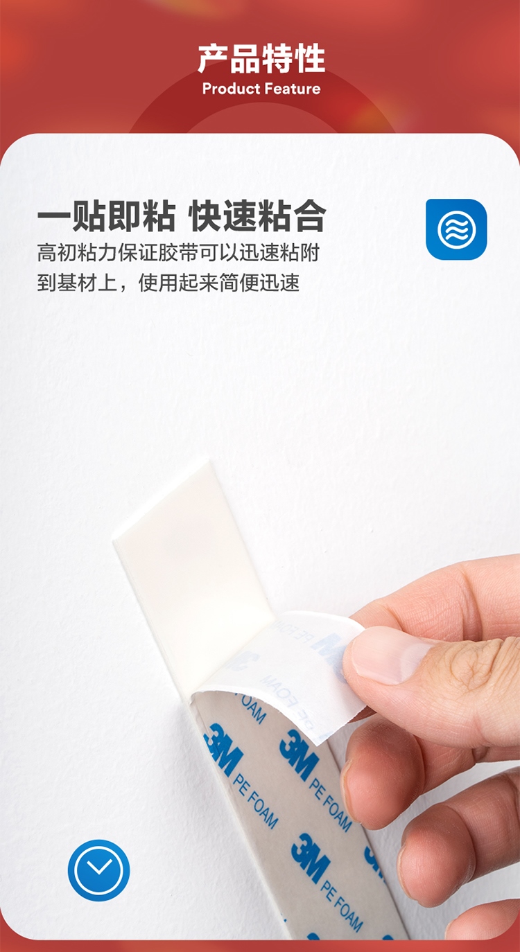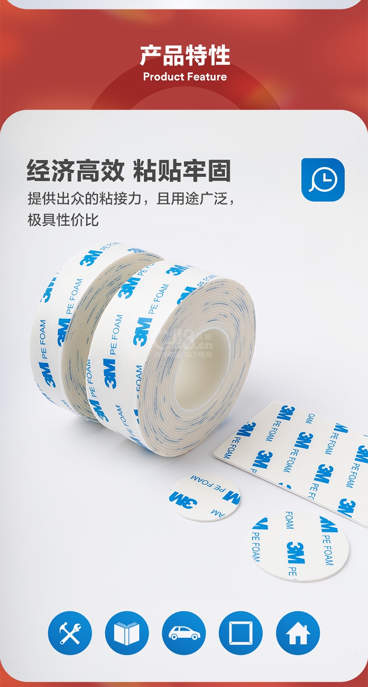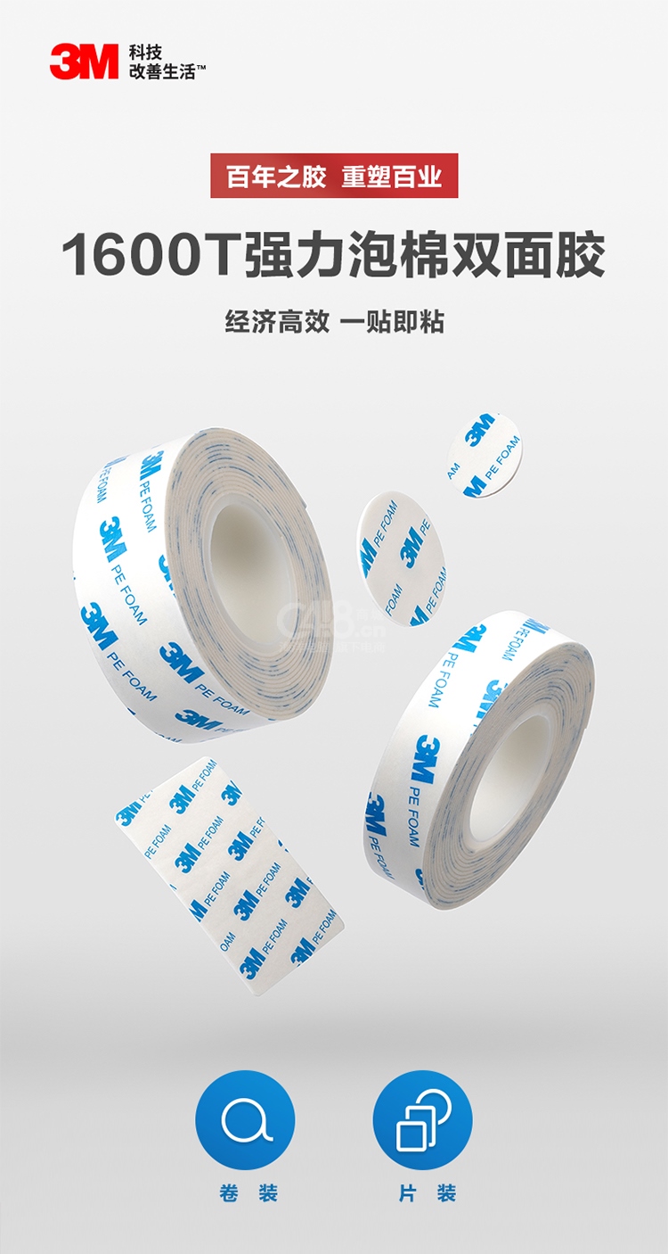 “3M”1600T 強力泡棉雙面膠 1袋裝(白色雙面膠帶強力泡棉無痕不留膠雙面膠袋裝20MM*3M)