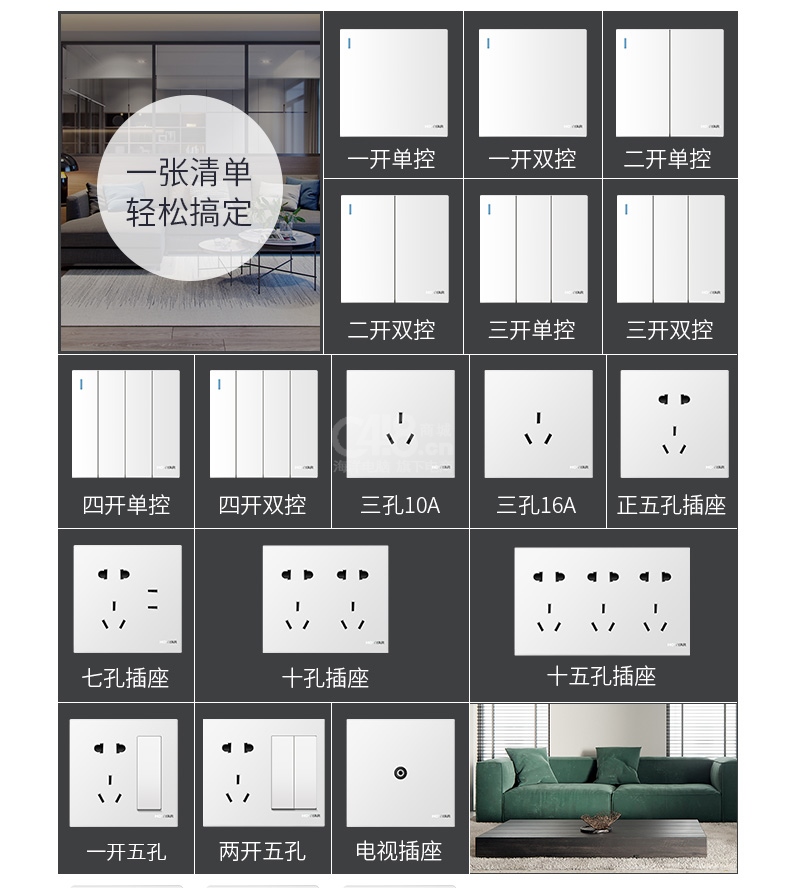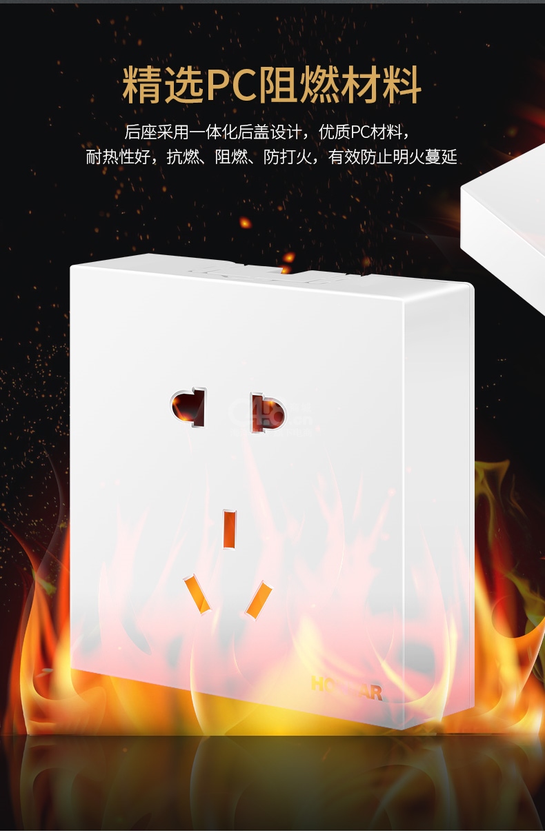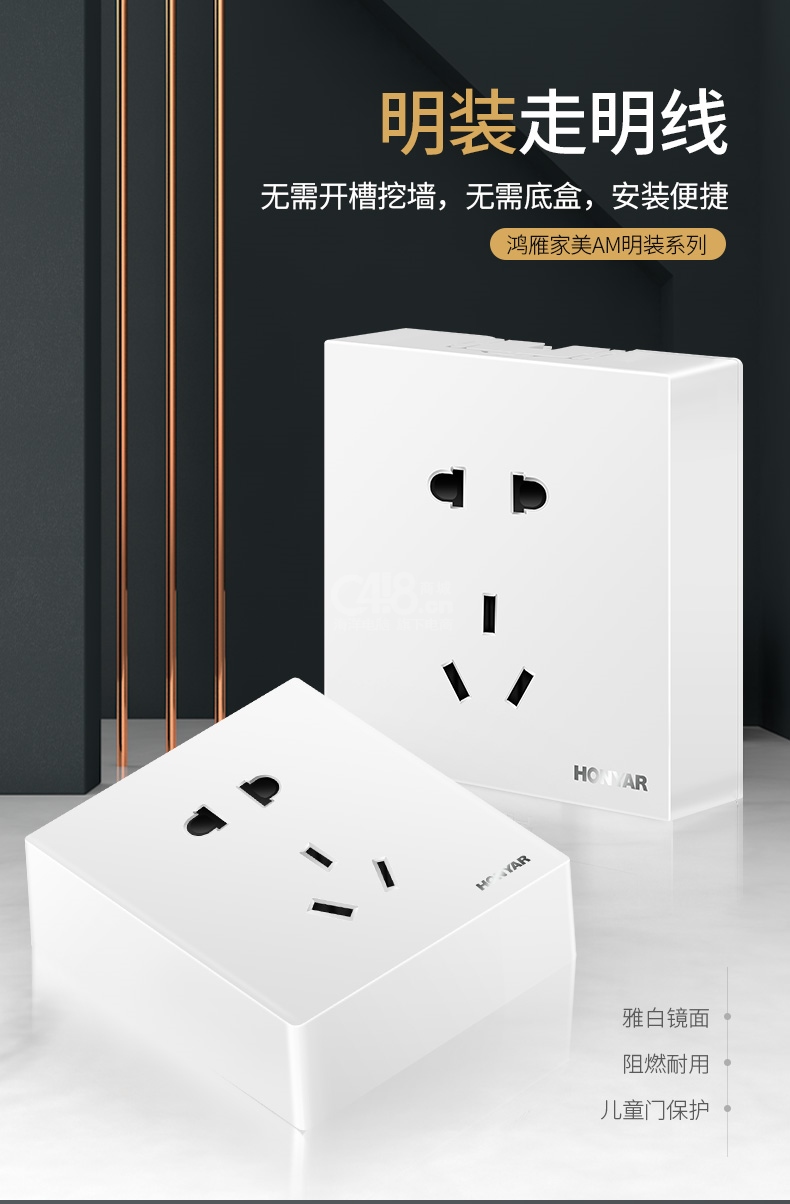 “HONYAR/鴻雁”AM86Z13A16 明裝開關(guān)插座 單個裝(白色面板三孔16A插座三插家用86型墻壁無框M系列)
