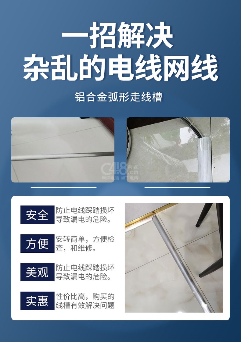 “BAIGE/百舸”4號(hào) 鋁合金地線槽 單根裝(明裝耐踩弧形自粘地線槽走線槽半圓金屬穿線板電線網(wǎng)線布線槽特厚1米/根)