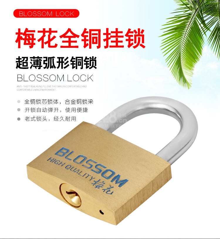 “BLOSSOM/梅花”45mm 銅掛鎖 單把裝(宿舍門鎖防盜窗鎖防水防銹鎖車廂柜門鎖075)