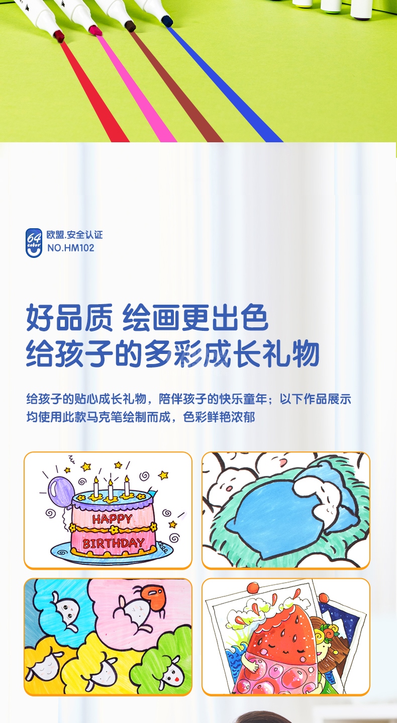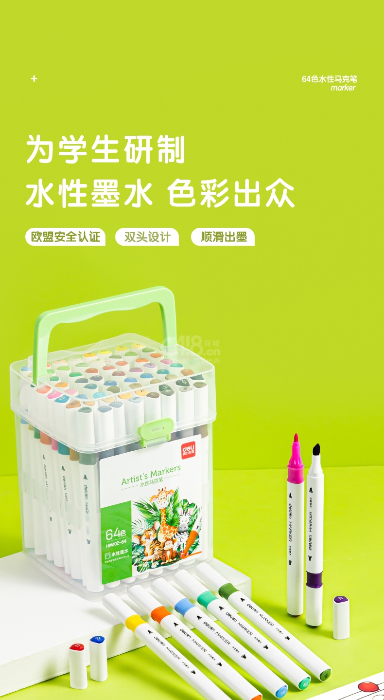 “deli/得力”HM102-64 水性馬克筆 單盒裝(64色速干涂色套裝水彩筆記號筆繪畫手繪涂鴉筆畫筆64支/盒)