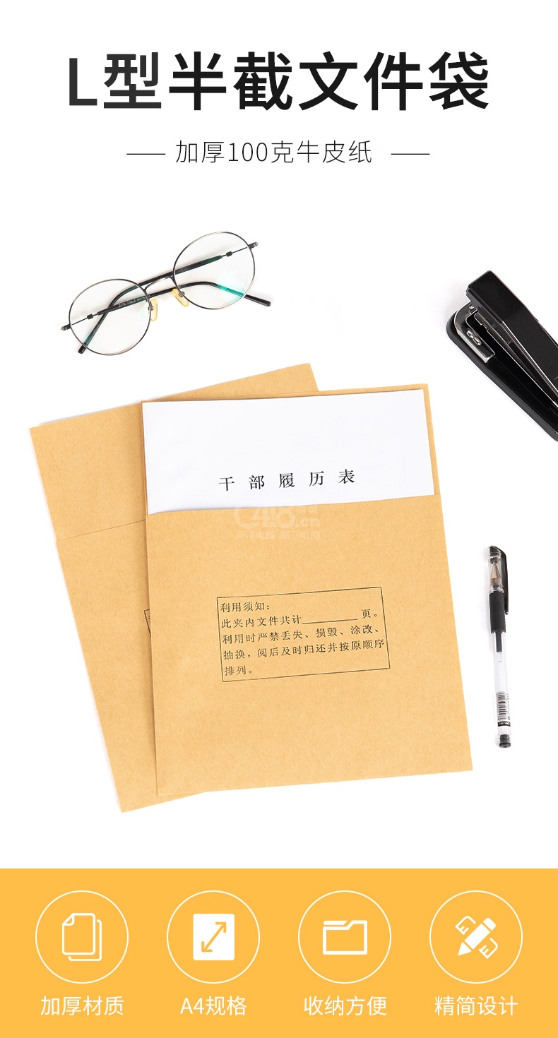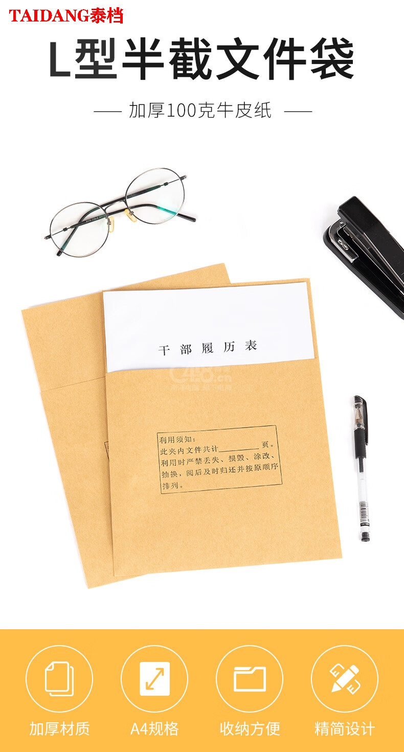 “TAI DANG/泰檔”A4 60克 L型半截文件袋 單個(gè)裝(牛皮紙封套袋內(nèi)頁100個(gè)/包)