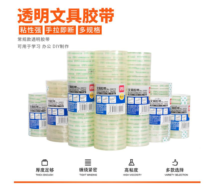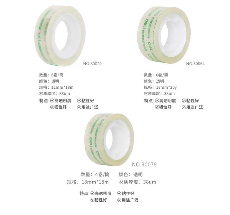 “deli/得力”No.30064 文具膠帶 1卷裝(高透18mm*20y*38um高品質(zhì)膠布8卷/筒)