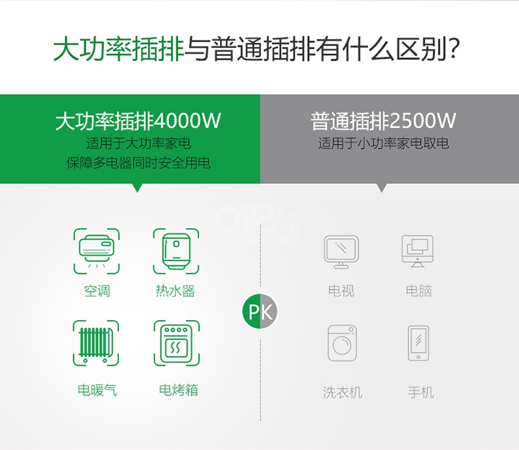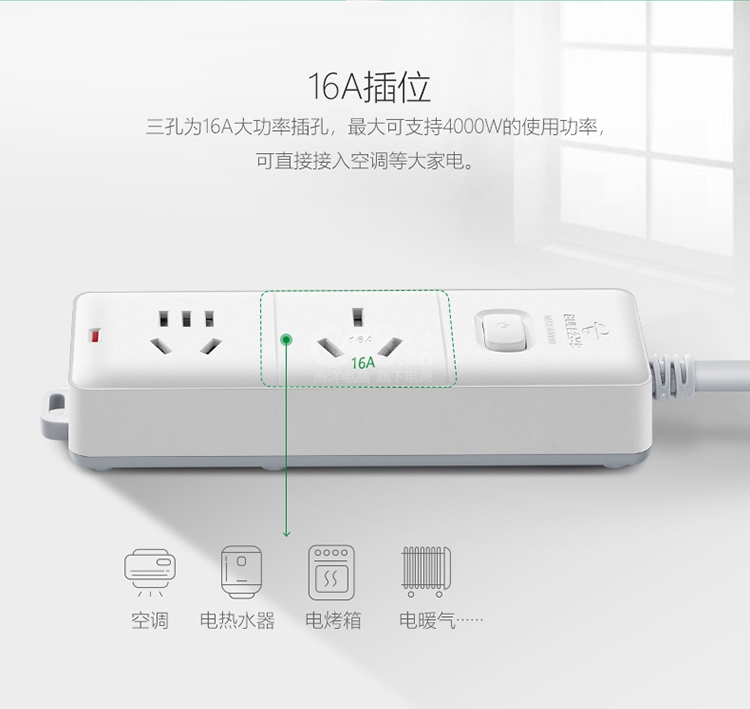 “BULL/公?!盙N-S102D 插座 單個裝(白色大功率16A插線板插排排插接線板2位總控全長3米)