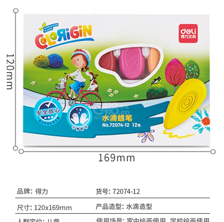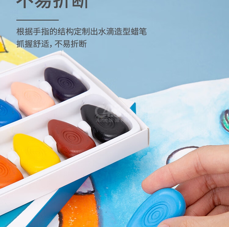 “deli/得力”No.72074-12 水滴蠟筆 單盒裝(12色油畫棒萌趣防滑不臟手幼兒兒童涂鴉繪畫畫筆美術(shù)用品套裝畫材文具)
