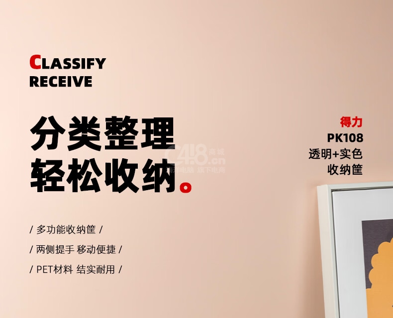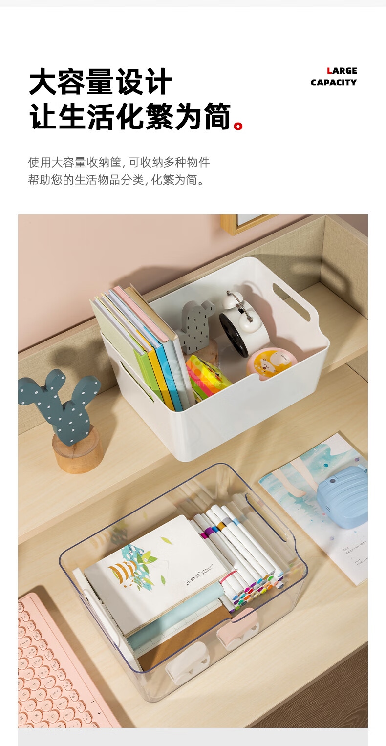 “deli/得力”PK108 收納筐 單個裝(透明亞克力大容量加厚書立架桌面書本收納盒閱讀架辦公學(xué)生書桌整理置物架裝書神器)