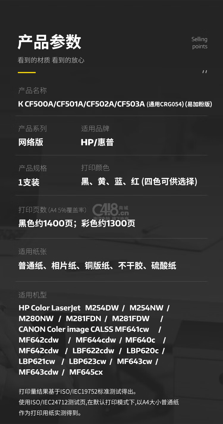 “KST/科思特”K CF502A(CRG054)易加粉 網(wǎng)絡(luò)版 高端碳粉盒 單支裝(黃色硒鼓適用惠普M254n/dw/nw M281fdn M281)