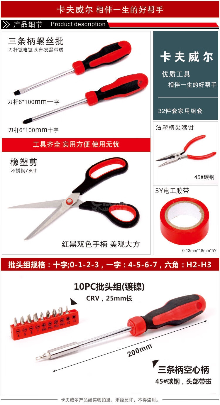 “OK-TOOLS/卡夫威爾”H2686A 32件工具箱套裝 單套裝(電工木工五金螺絲刀扳手錘子內(nèi)六角)