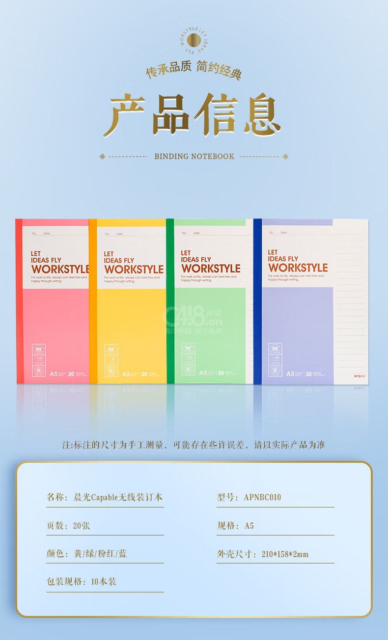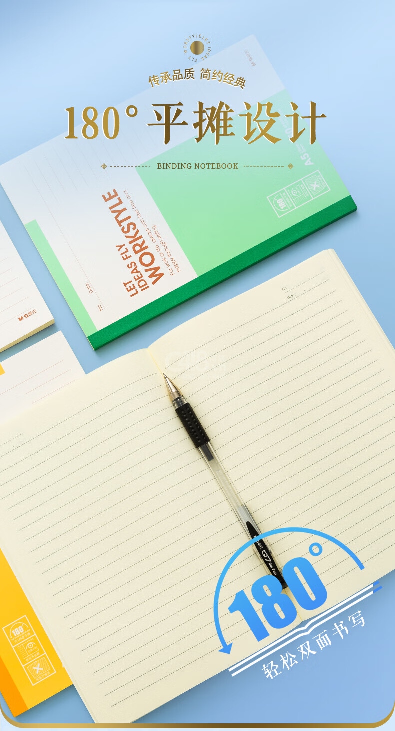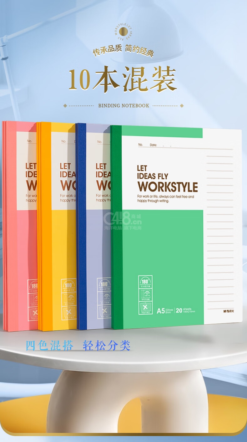 晨光(M&G)文具A5記事本 20張無線裝訂本筆記本本子 辦公會(huì)議記錄本軟抄本日記本 辦公用品 10本裝APNBC010