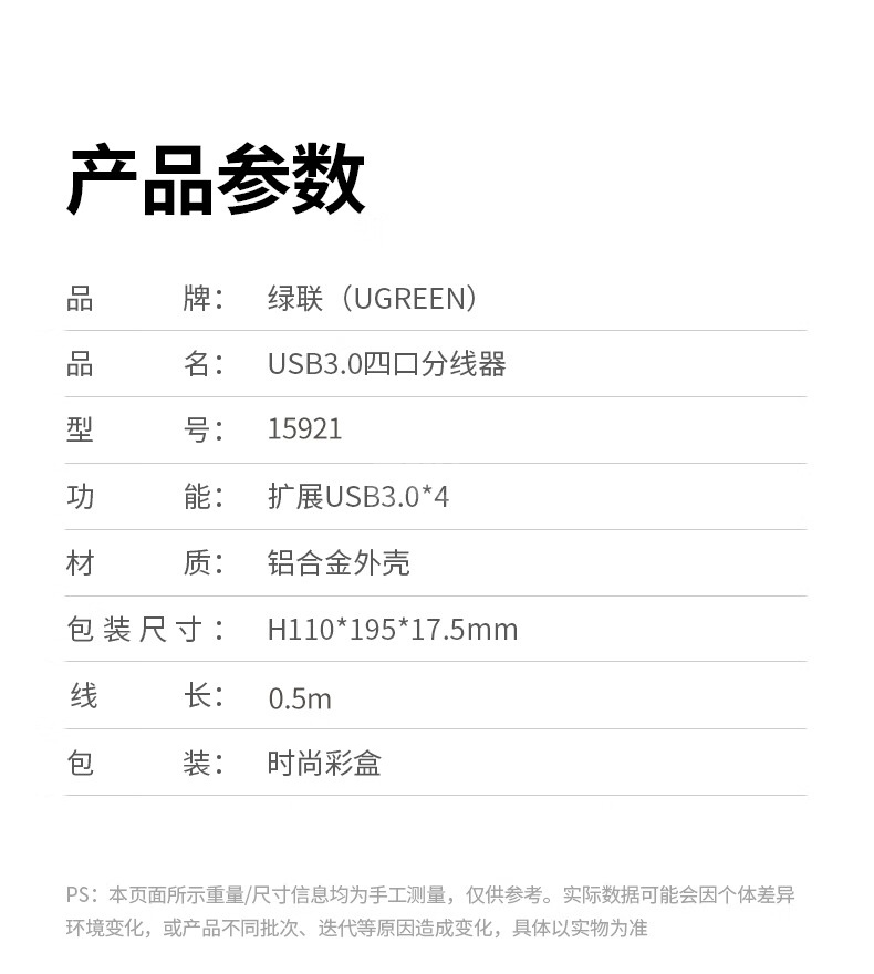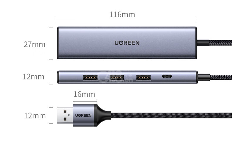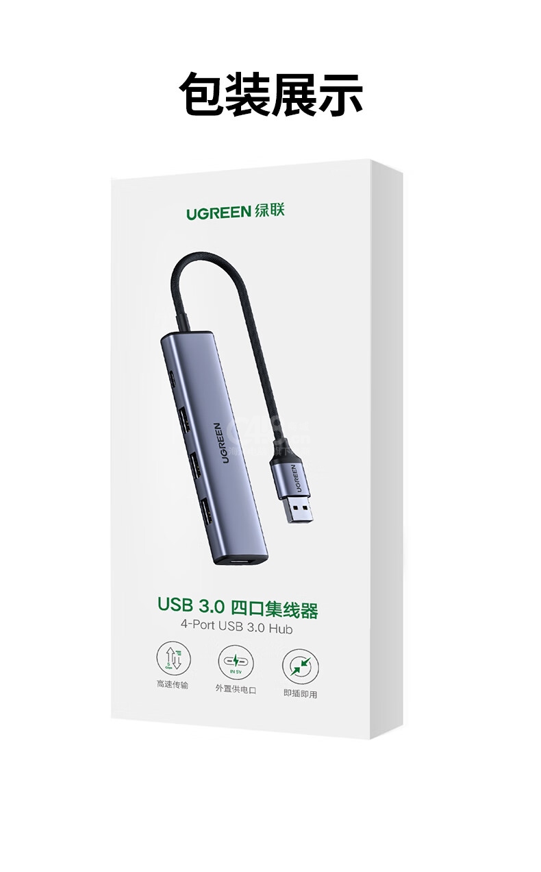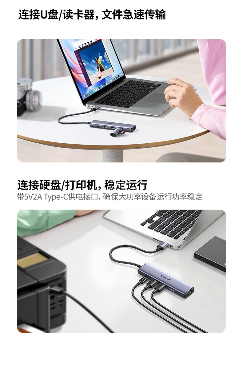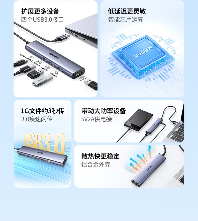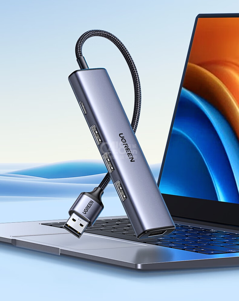 “UGREEN/綠聯(lián)”CM473 15921 USB3.0四口集線器 單個裝(擴展塢拓展塢分線器HUB高速4口集線轉(zhuǎn)接頭轉(zhuǎn)換器筆記本電腦延長線帶Type-C供電鋁合金0.5米)