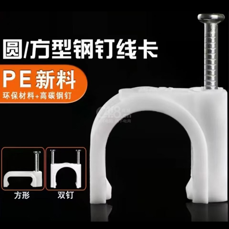 “國(guó)產(chǎn)”圓形 內(nèi)徑10mm 線卡子 1盒裝(電線固定線卡子鋼釘線卡網(wǎng)線扣墻釘線釘電纜水管卡扣理線器固線釘100粒)