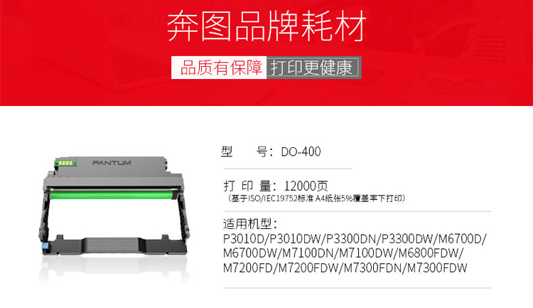 “PANTUM/奔圖”DO-400 鼓組件 單個裝(黑色適用于P3010/P3300/M6700/M6800/M7100/M7200系列約12000頁)
