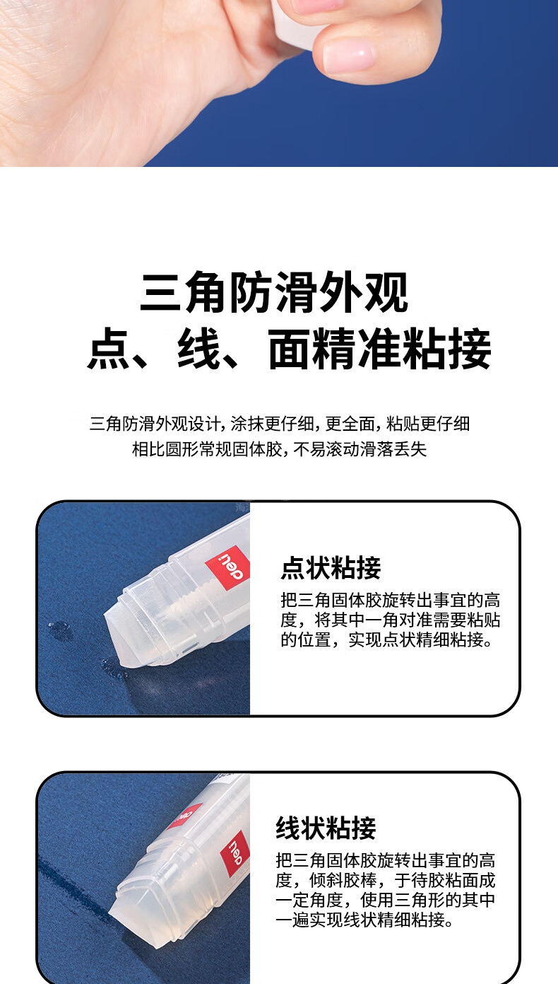 “deli/得力”No.53407 固體膠 單盒裝(三角8gACR高粘系列固體膠棒手工固體黏膠粘結(jié)牢固迅速快干耐用涂抹順滑不易揮發(fā)24支/盒)