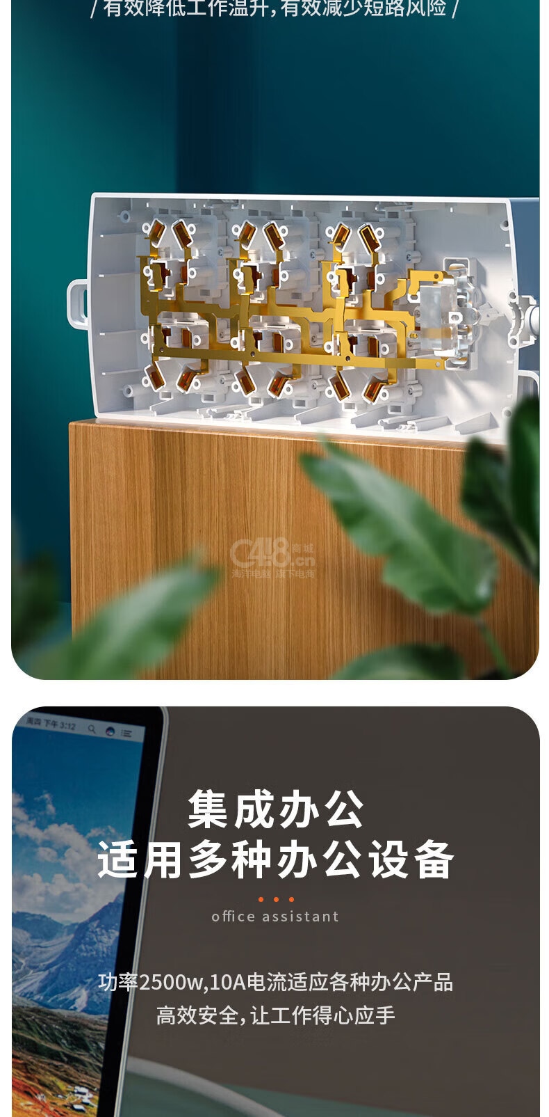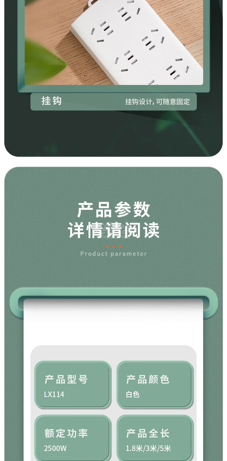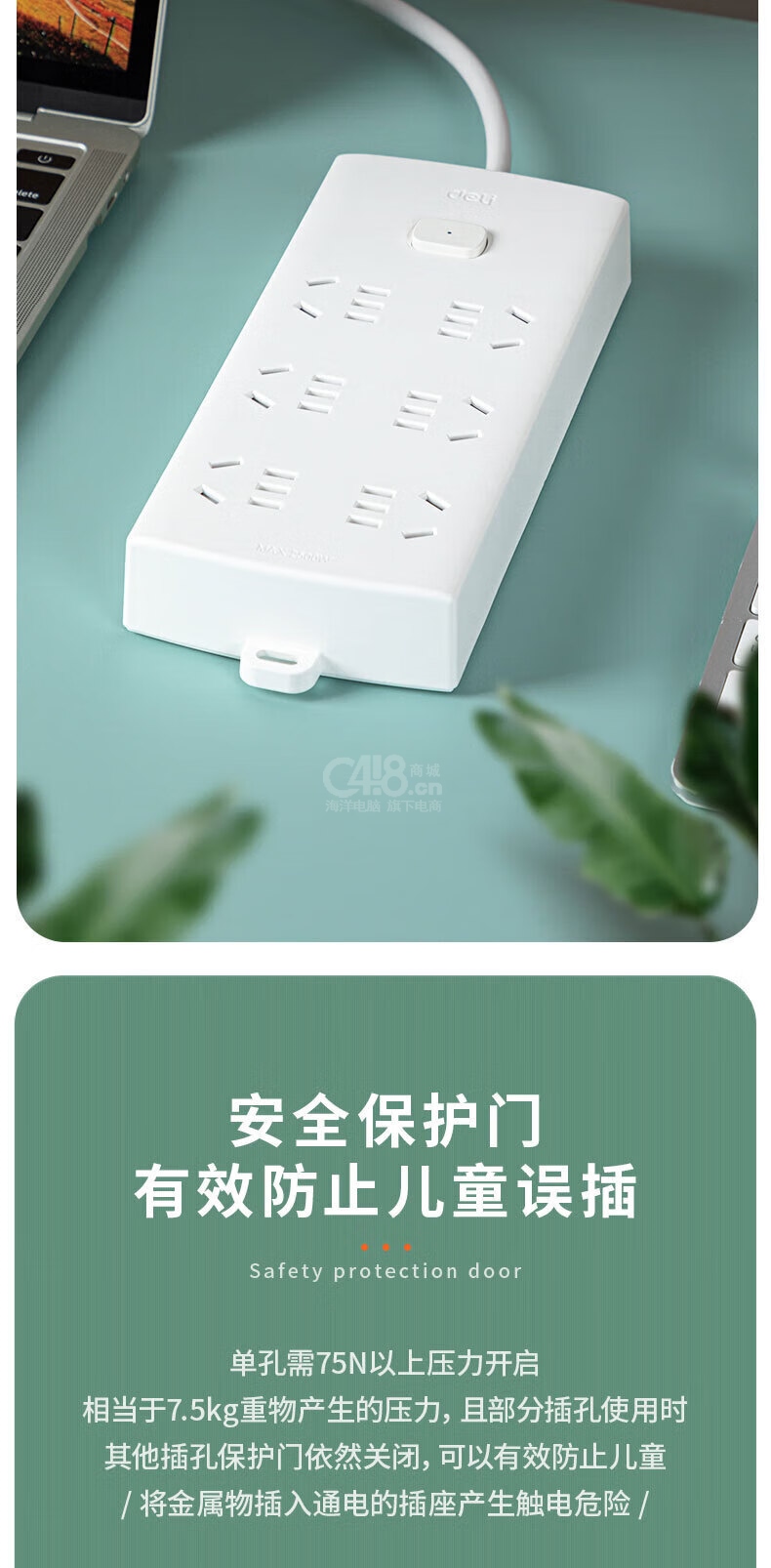 “deli/得力”LX114(03) 延長線插座 單個裝(瑩白系列插排插板電源插線板6組3米)