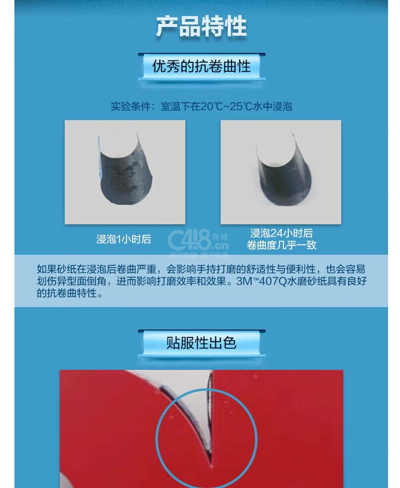 “3M”407Q 砂紙 1張裝(水沙80目227*280MM打磨干濕水兩用汽車金屬鐵細(xì)磨)