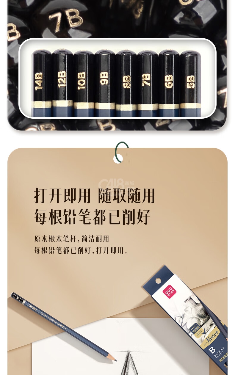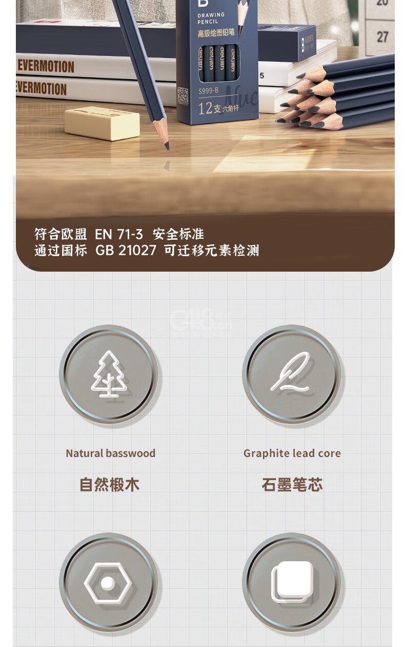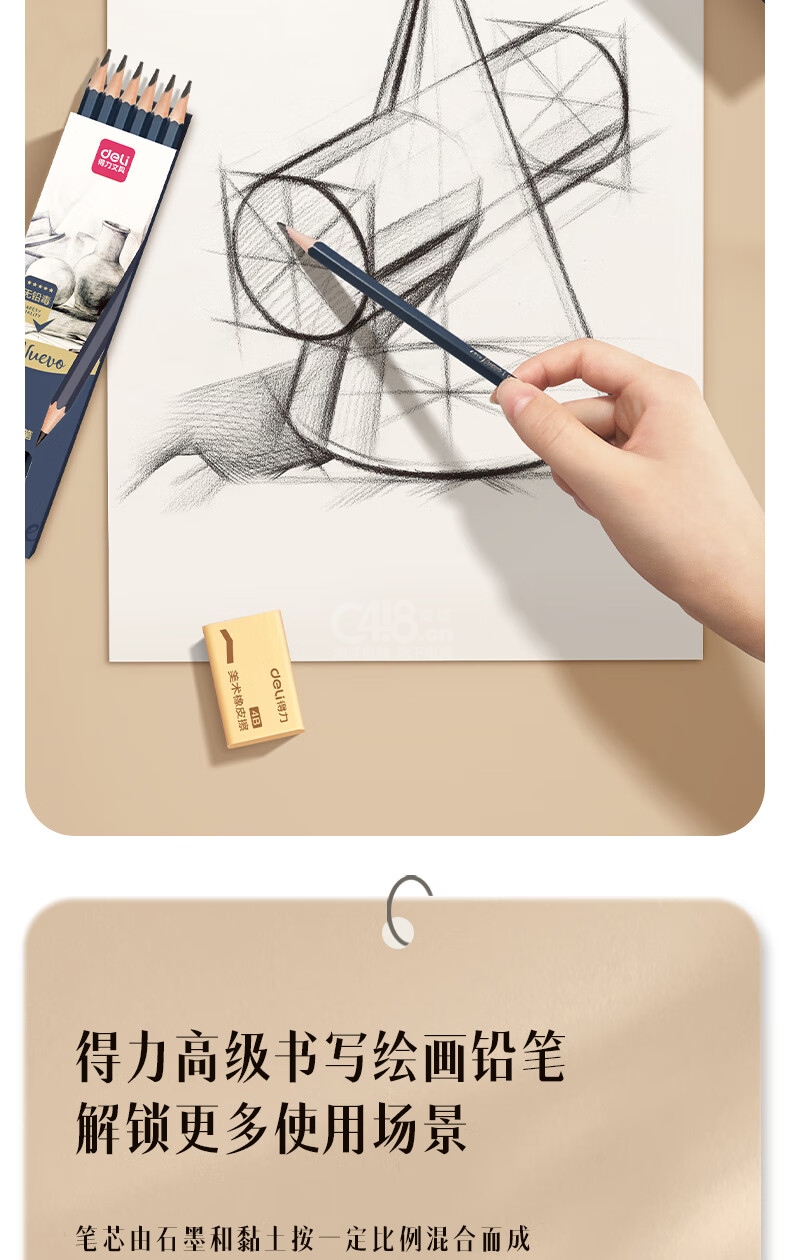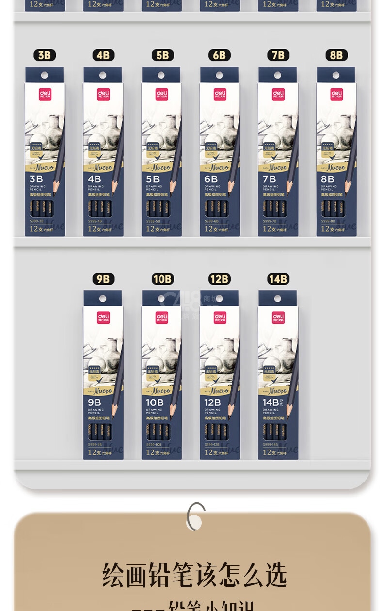 “deli/得力”S999-B 高級繪圖鉛筆 單盒裝(美術(shù)繪圖B鉛筆學(xué)生素描速寫12支/盒)