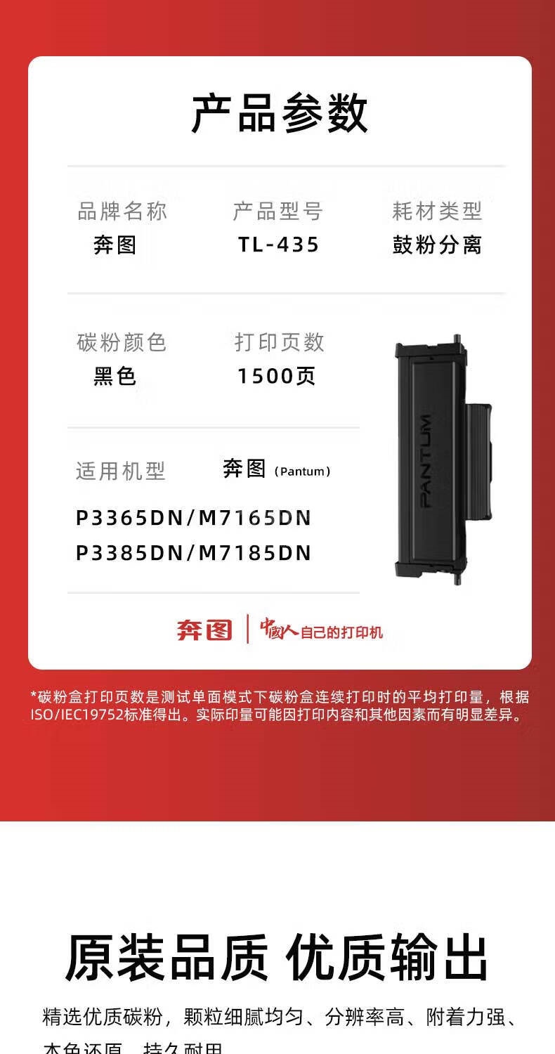 “PANTUM/奔圖”TL-435 粉盒 單個(gè)裝(黑色適用奔圖P3365DN/P3385DN/M7165DN/M7185DN打印機(jī))