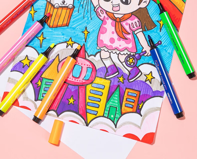 “deli/得力”No.70720 可洗水彩筆 單盒裝(12色三角桿畫(huà)筆兒童繪畫(huà)大容量初學(xué)者適用)