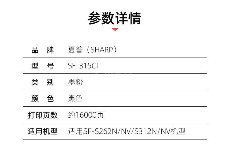 “SHARP/夏普”SF-315CT 墨粉 單個(gè)裝(黑色適用SF-S262N/NV/S312N/NV機(jī)型)約16000頁)