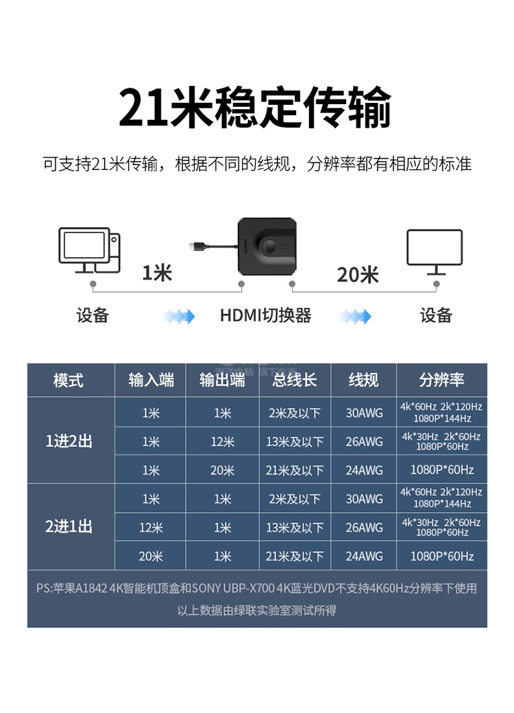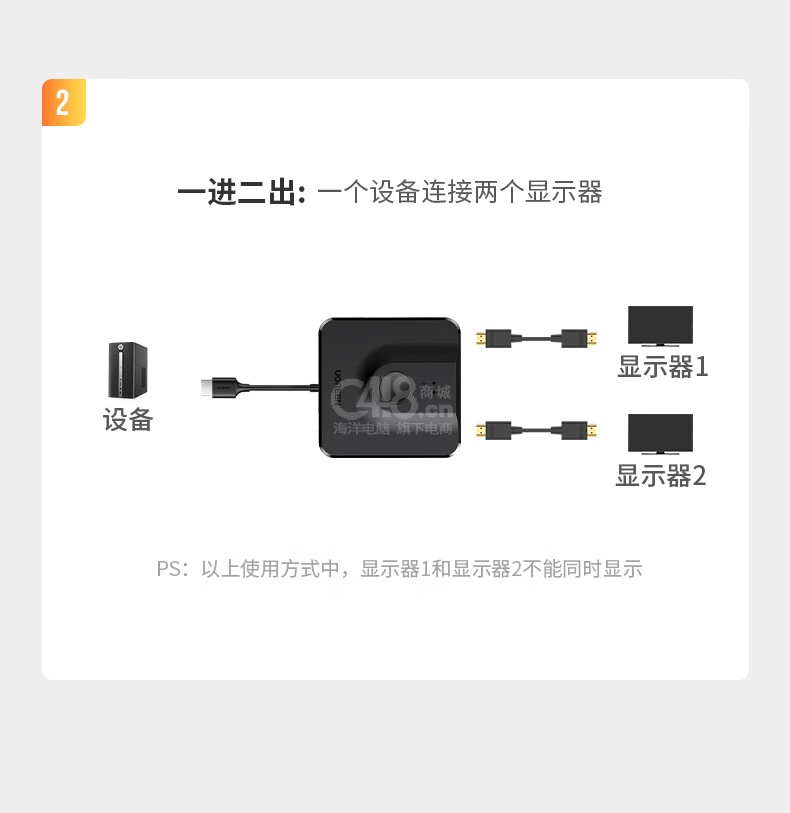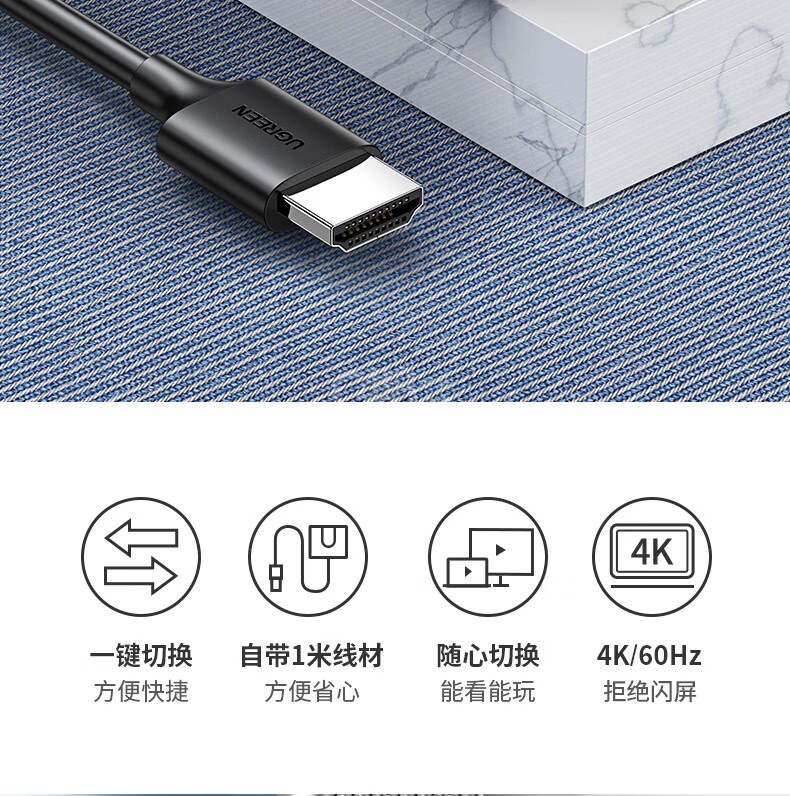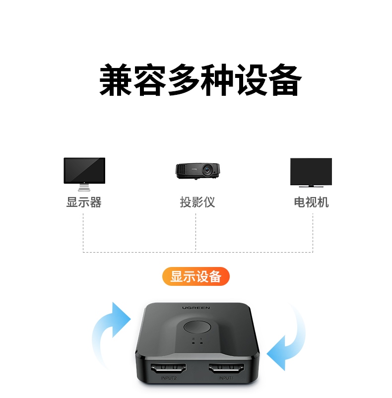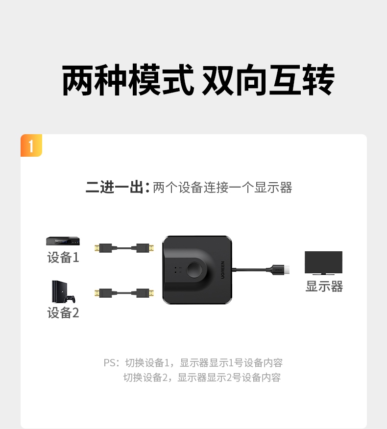 “UGREEN/綠聯(lián)”CM311 70607 切換器 單個裝(HDMI2.0雙向切換器二進(jìn)一出4K60Hz高清視頻分配器一分二筆記本電腦顯示器接電視投影分屏器配1米HDM線)