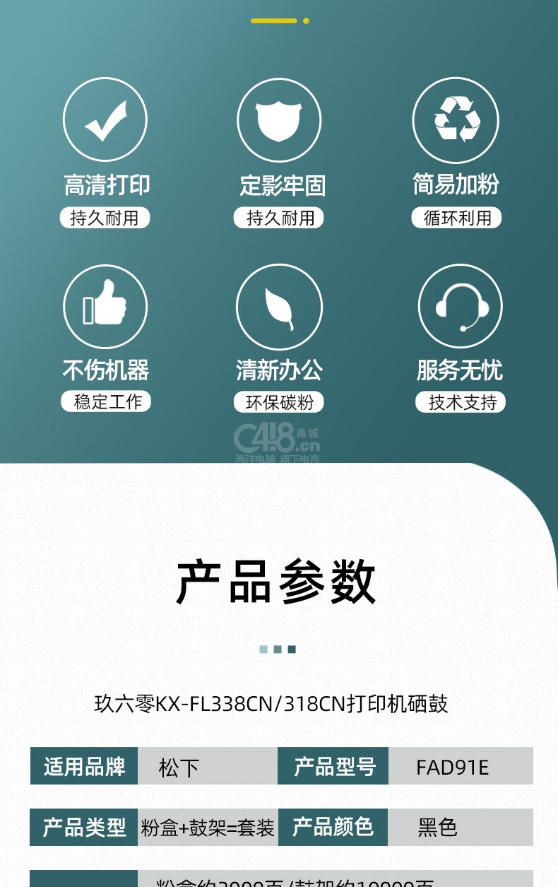 “JIULIULING/玖六零”FAD91ECN 粉盒+鼓架 1個(gè)裝(松下328硒鼓適用KX-FL338CN 318CN打印機(jī)墨盒FAD297CN粉盒91E墨粉盒FAC296CN 90E傳真機(jī)313CN 353套裝)