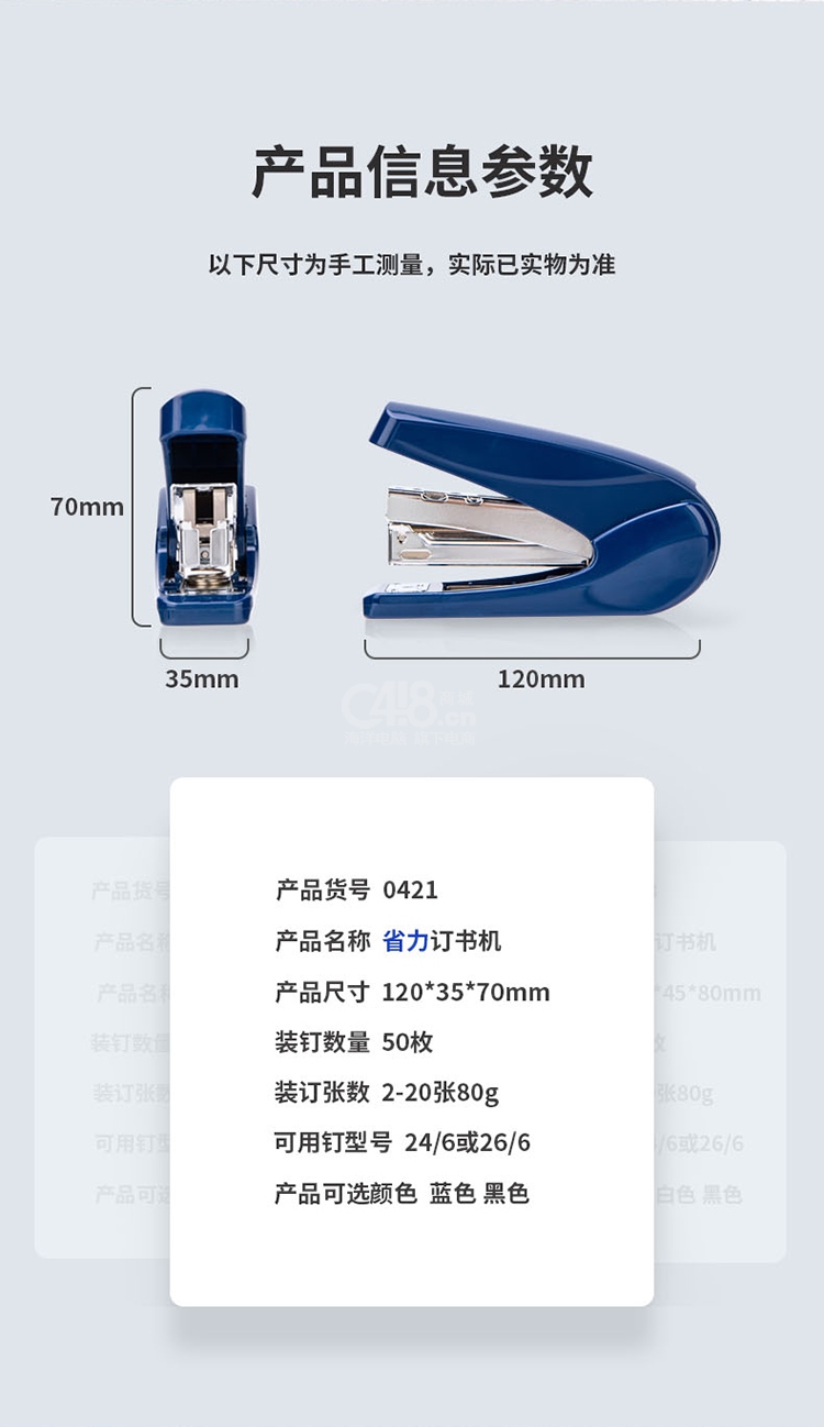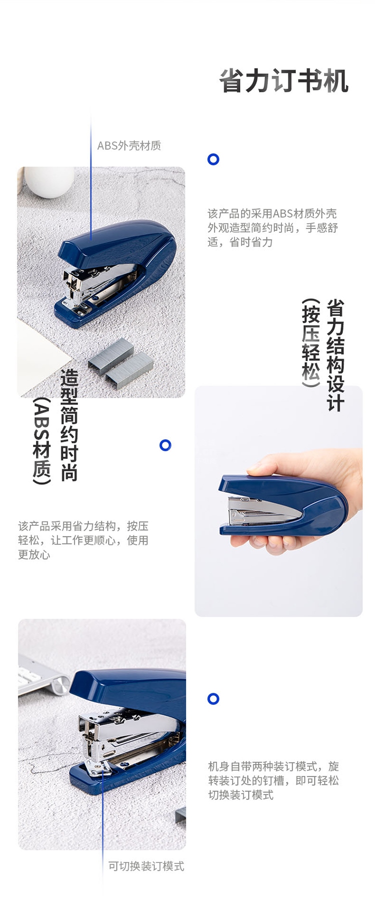 “deli/得力”No.0421 訂書機 單個裝(藍色20頁小號省力訂書器適配12#訂書釘辦公用品不含釘)
