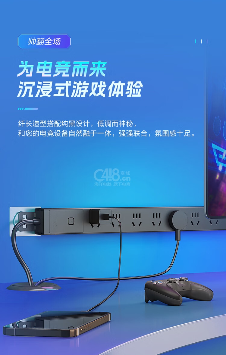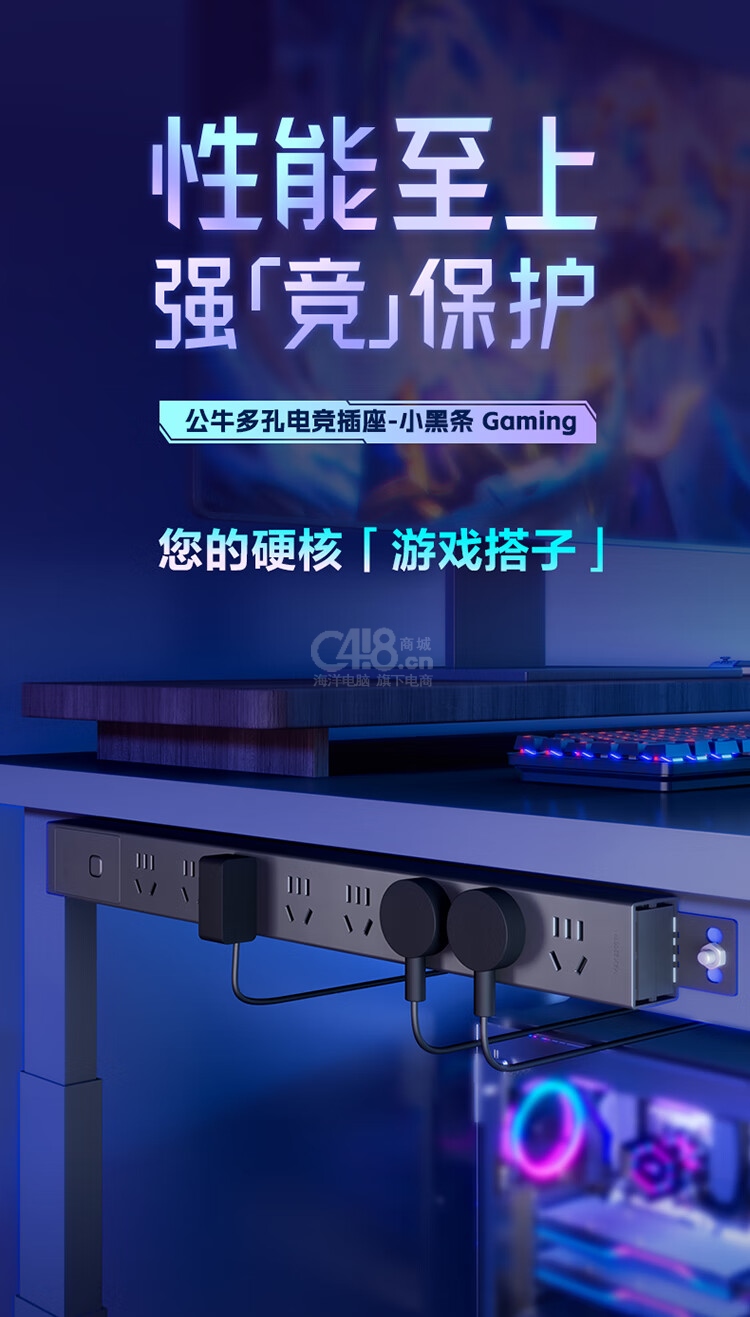 “BULL/公牛”GNE-P108E 插座 單個裝(黑色PDU桌面過載超功率保護桌下電競機柜插線板插排排插8位總控開關(guān)全長2米)