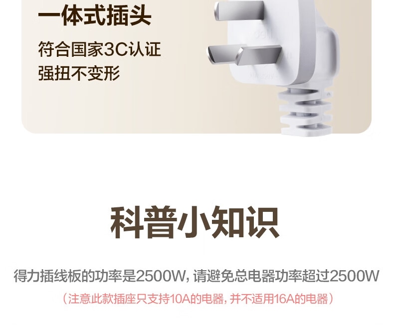 “deli/得力”LU9052(03) 插座 單個(gè)裝(新國(guó)標(biāo)安全插線板插排排插插板接線板拖線板延長(zhǎng)線總控開(kāi)關(guān)8位3米)