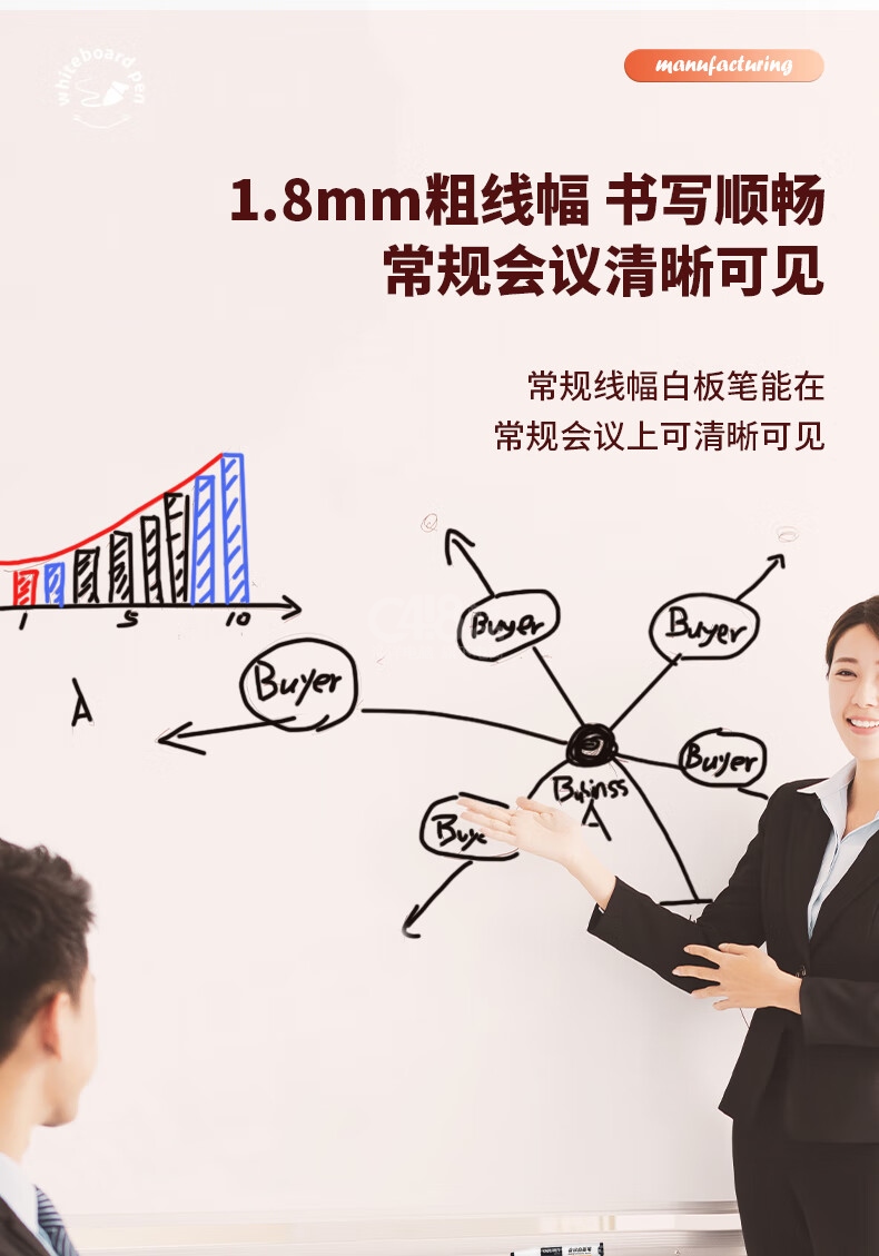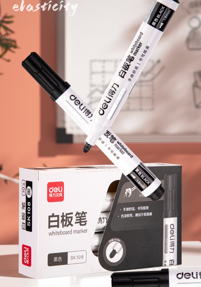 “deli/得力”SK108 白板筆 單盒裝(黑色文具可擦單頭易擦辦公會議筆10支/盒)