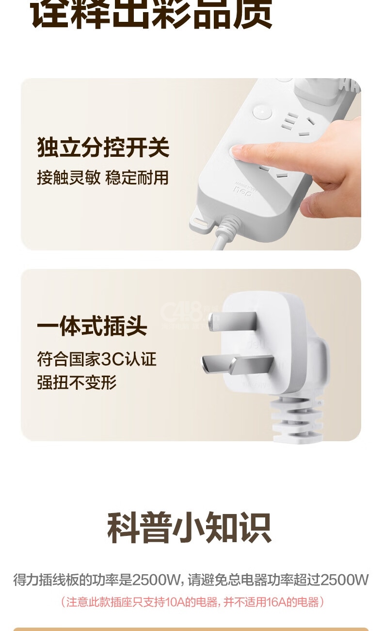 “deli/得力”LU9053(1.8) 插座 單個(gè)裝(新國(guó)標(biāo)安全插線板/插排/排插/插板/接線板/拖線板延長(zhǎng)線獨(dú)立開關(guān)分控4位1.8米)