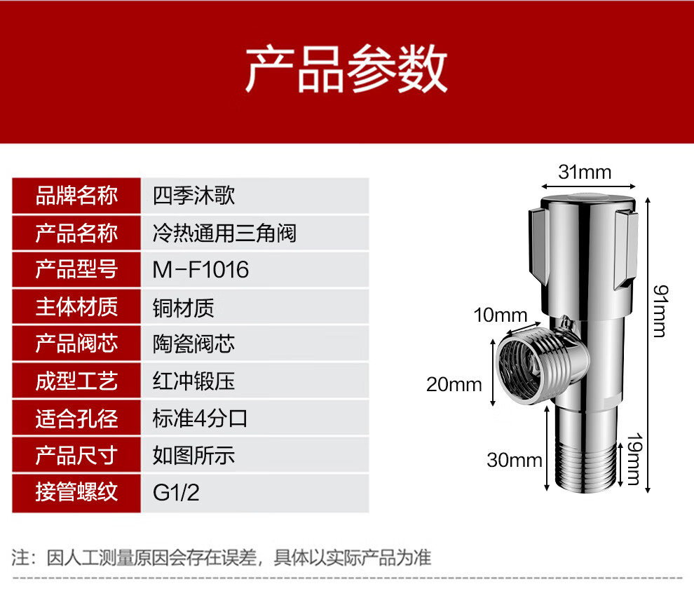 “MICOE/四季沐歌”M-F1016 三角閥 單個裝(角閥銅主體加厚冷熱水快開三角閥4分接口八字閥止水閥)