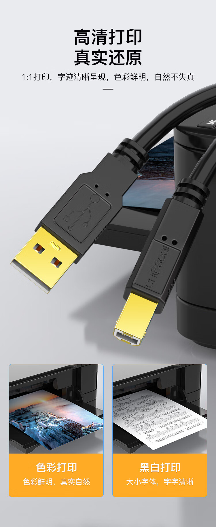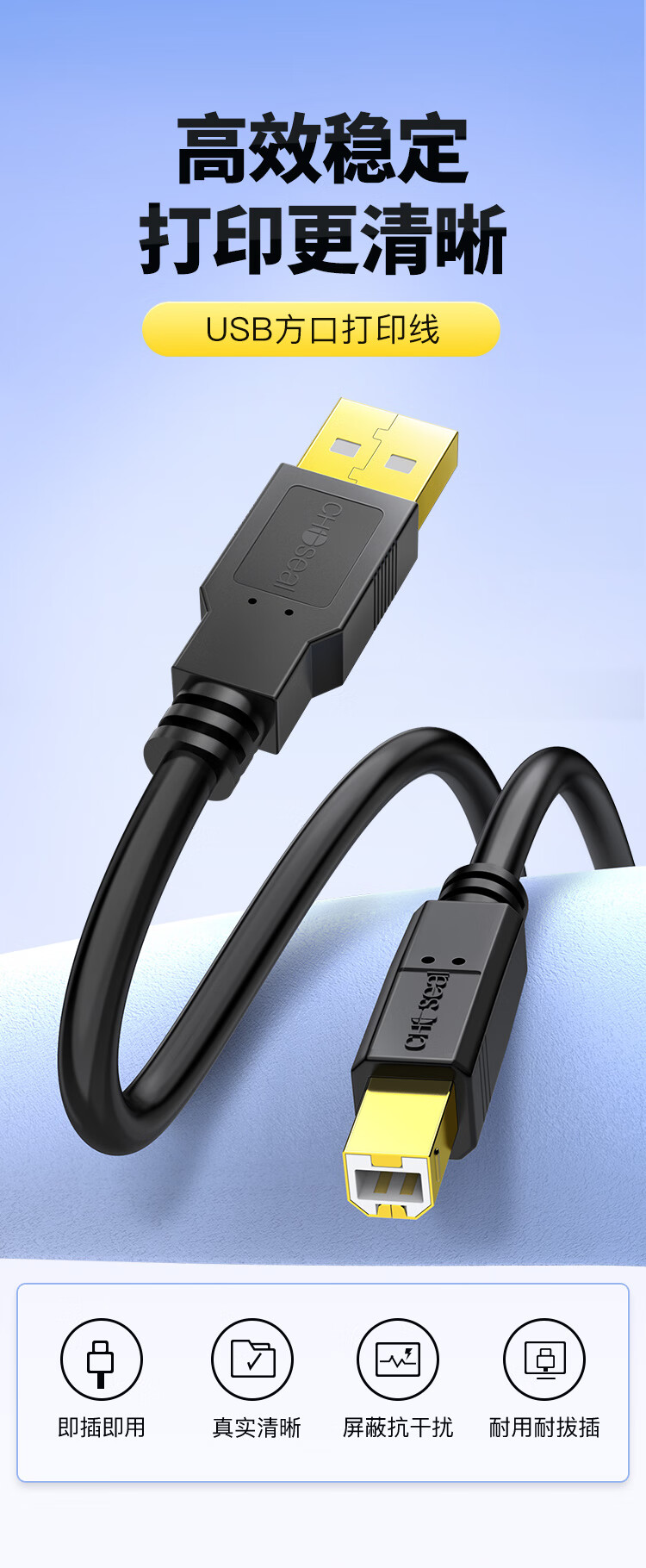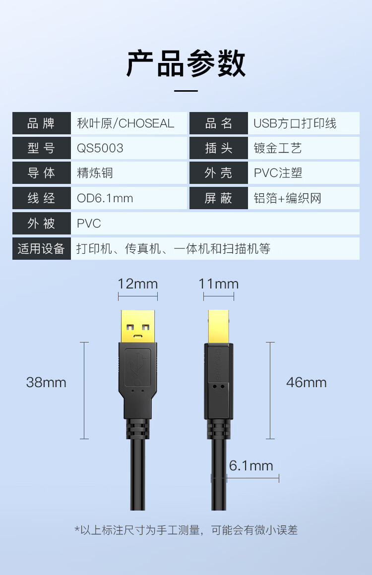 “CHOSEAL/秋葉原(秋枼原)”QS5003T10 USB方口打印線 單條裝(高速USB打印機數(shù)據(jù)連接線2.0打印機線方口usb打印線適用惠普HP佳能愛普生10米)